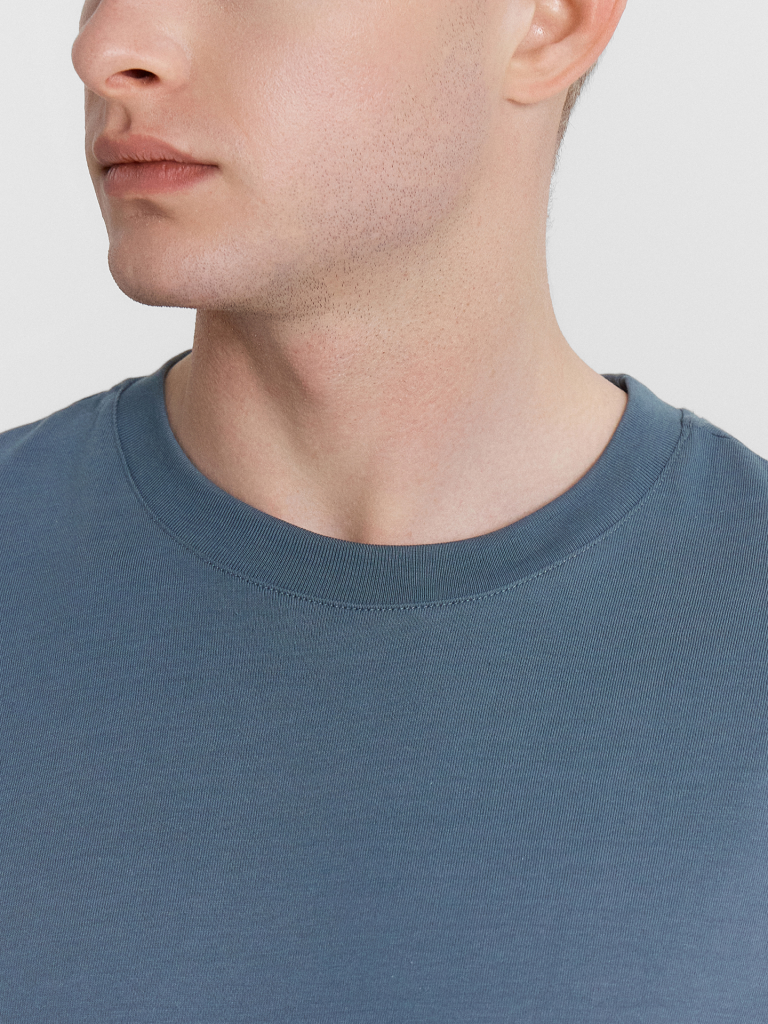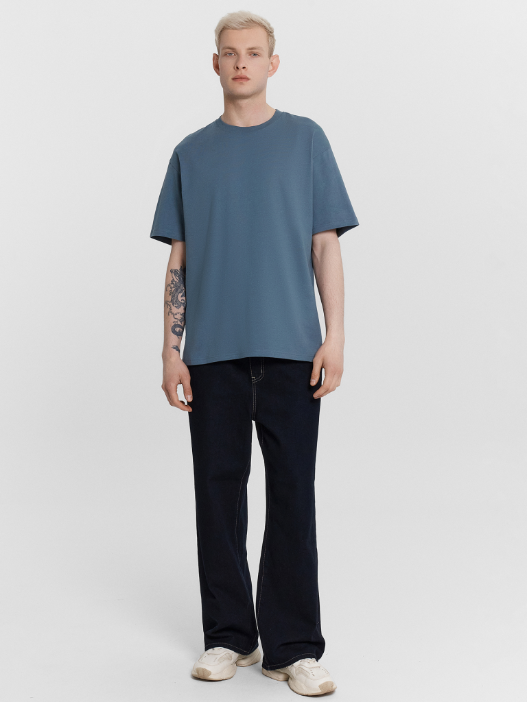Однотонная мужская футболка — прекрасное решение для тех, кто ценит комфорт и стиль в повседневном гардеробе. Круглая горловина с обтачкой из рибаны гарантирует удобную посадку, сохраняя свою первоначальную форму даже после многократных стирок. Спущенное плечо и углубленная пройма придают модели современный расслабленный силуэт, обеспечивая свободу движений и комфорт в носке. Длина рукава чуть выше локтя делает футболку универсальной: она подходит как для теплой погоды, так и для многослойных образов в прохладное время. Материал — хлопковая кулирка, отличается высокой воздухопроницаемостью и мягкостью, создавая приятные тактильные ощущения и комфорт на протяжении всего дня. Этот практичный и стильный элемент гардероба легко комбинируется с джинсами, брюками или шортами, помогая создавать актуальные и удобные повседневные образы!