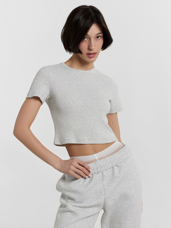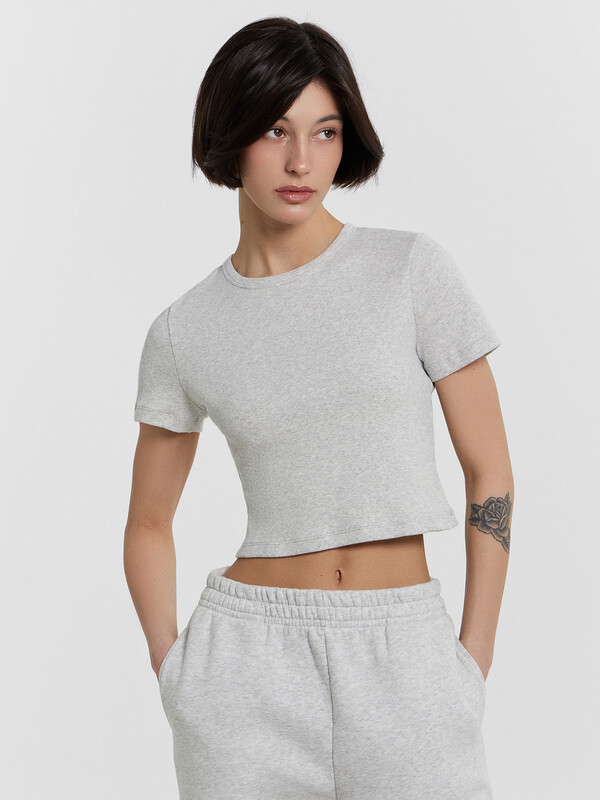 Эта женская укороченная футболка из рибаны — стильное и универсальное дополнение к базовому гардеробу! Ее прилегающий силуэт эффектно подчеркивает фигуру, создавая элегантный и современный образ. Натуральный хлопок в составе обеспечивает мягкость и комфорт при носке, а благодаря высокой воздухопроницаемости ткань остается приятной даже в жаркую погоду. Круглый вырез добавляет классические нотки, гармонично дополняя общий стиль, а короткие рукава дарят ощущение легкости и свободы движений. Фактурный рубчик придает модели интересный визуальный эффект, делая футболку стильной и актуальной. Она легко сочетается как с джинсами, брюками, юбками, так и с более спортивными образами, позволяя создавать разные стильные сочетания. Эта модель станет вашим любимым элементом гардероба, ведь она объединяет удобство, функциональность и современный дизайн!