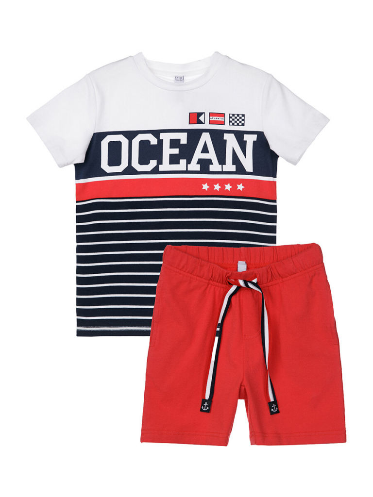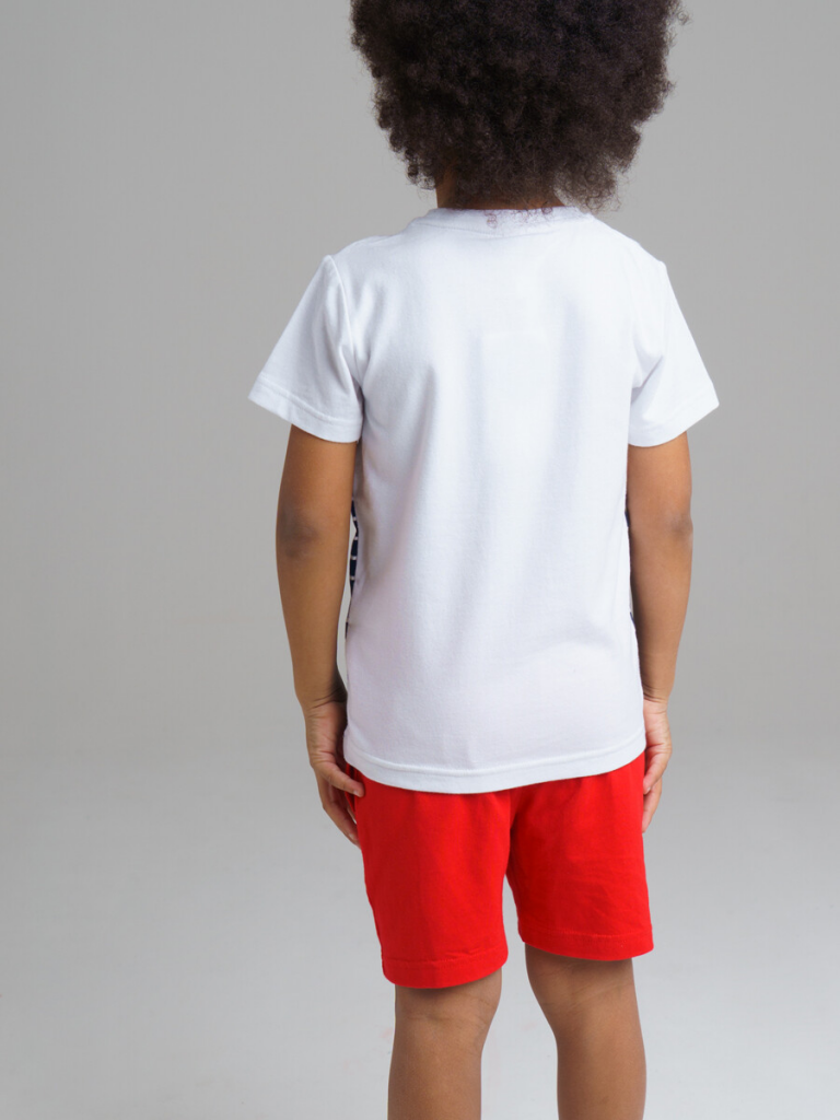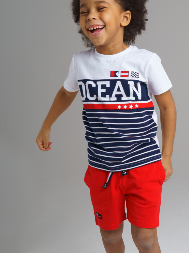 > Футболка, шорты для мальчика белый,тёмно-синий,красный