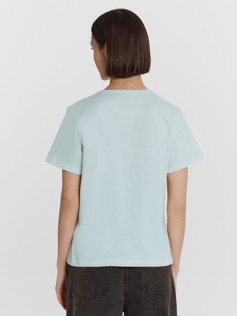 Эта женская футболка прямого силуэта — универсальная модель, которая отлично впишется в повседневный гардероб. Изделие выполнено из трикотажного материала кулирка, который отличается мягкостью, воздухопроницаемостью и приятной текстурой, обеспечивая комфорт при носке в течение всего дня. Натуральный состав ткани позволяет коже дышать, предотвращая перегрев и создавая ощущение легкости. Круглая горловина придает классический акцент, обеспечивая удобную посадку и визуальную гармонию. Короткие рукава делают модель практичной и удобной для различных погодных условий, а свободный крой позволяет сочетать футболку с брюками, шортами, юбками и легинсами, создавая разнообразные стильные образы. Благодаря минималистичному дизайну, футболка легко комбинируется с различными аксессуарами и верхней одеждой, подходя как для повседневной носки, так и для более расслабленных или спортивных образов. Идеальный вариант для тех, кто ценит комфорт, функциональность и универсальный стиль!