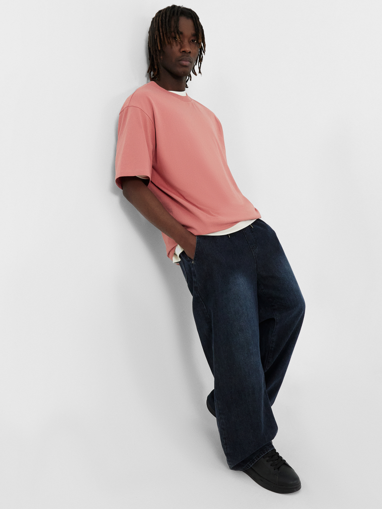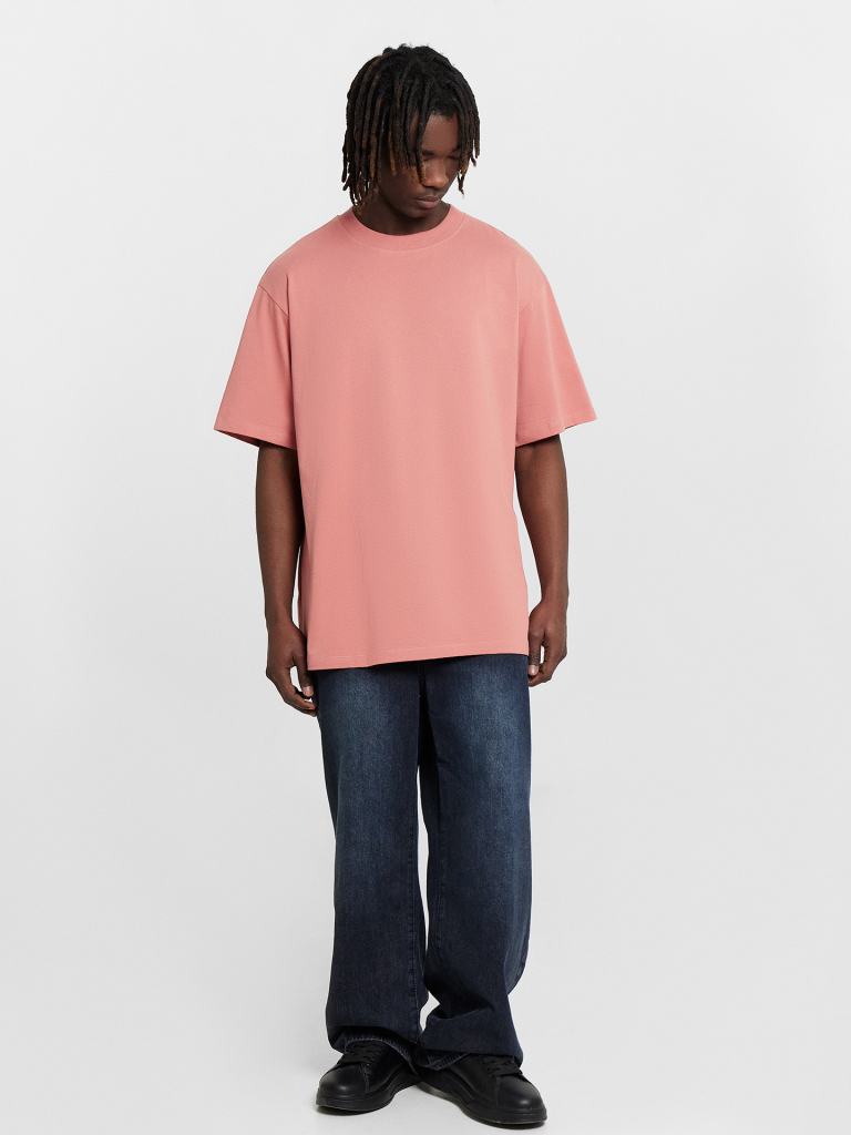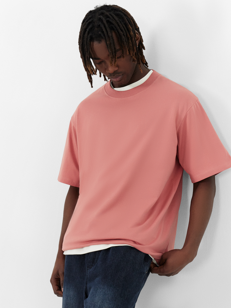 Стильная мужская футболка оверсайз дополнит массу разнообразных образов. Круглая горловина, плотно прилегающая к шее, обработана обтачкой из рибаны, создавая аккуратный и комфортный вид. Линия плеча немного спущена, добавляя стильный акцент. Короткие рукава и нижние срезы футболки обработаны швом вподгибку, что придает изделию аккуратность и долговечность. Модель выполнена из хлопковой кулирки, обеспечивающей мягкость и воздухопроницаемость. Это идеальный выбор для тех, кто ценит комфорт и стиль. Такая футболка легко сочетается с различными элементами гардероба, создавая стильные и современные образы.