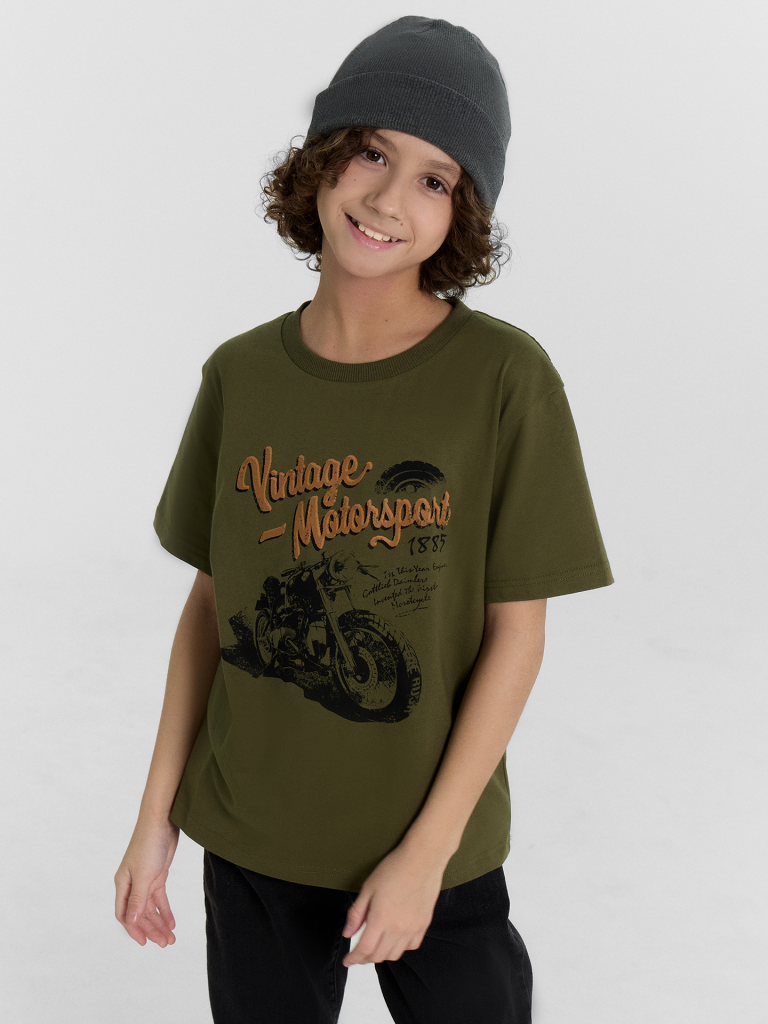 Удобная и стильная футболка для мальчиков, выполненная из трикотажного кулирного полотна. Этот материал обеспечивает мягкость и комфорт при носке, идеально подходя для активных и подвижных мальчиков. Модель имеет короткие рукава со спущенной линией плеча, что добавляет современный акцент и свободу движений. Круглая горловина придает изделию классический и аккуратный вид. Эта футболка станет отличным выбором для повседневного ношения, даря вашему ребенку комфорт и стиль. Рекомендуем!