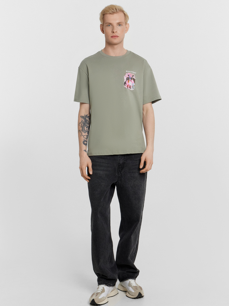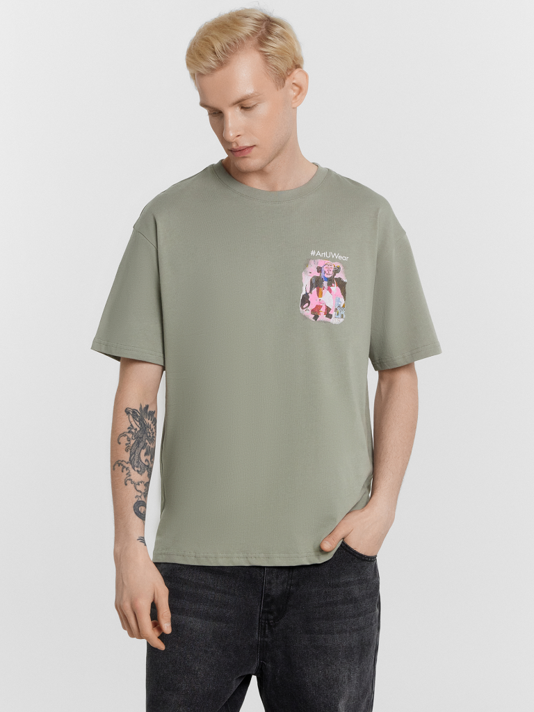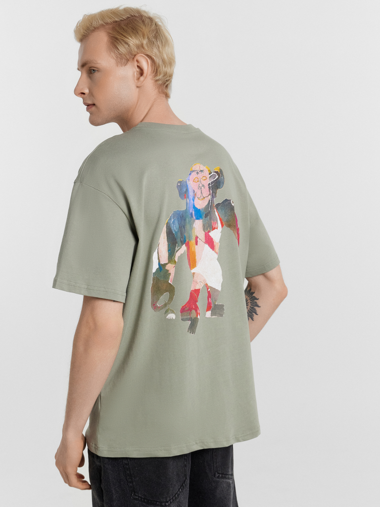 Мужская футболка свободного силуэта – обязательный элемент гардероба для тех, кто ценит комфорт и стиль. Модель с круглой горловиной, спущенными плечами и углубленной проймой обеспечивает свободу движений и непринужденный вид. Короткие рукава добавляют легкости и подходят для любого времени года. Для выполнения этой модели использовали хлопковую кулирку – легкий трикотажный материал, известный своей гладкостью и отличной воздухопроницаемостью, что делает ее идеальной для повседневной носки. Кулирка не только приятна к телу, но и хорошо держит форму, обеспечивая долговечность изделия.