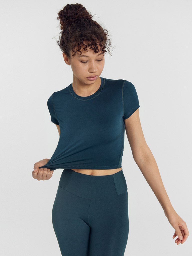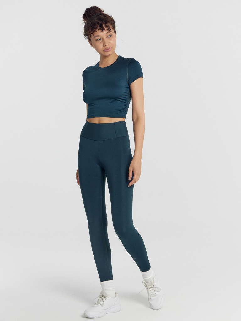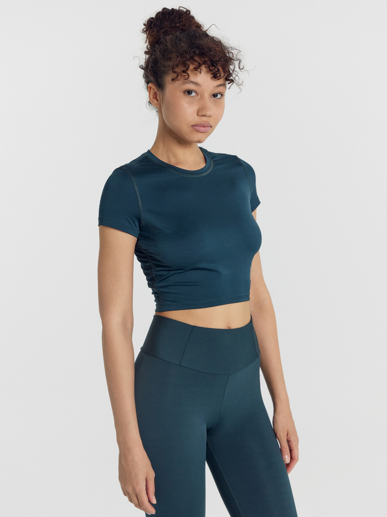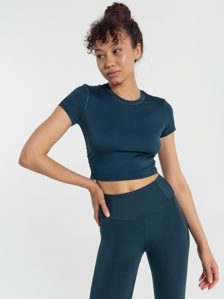 Футболка женская изготовлена из высококачественного материала. Модель укороченная и присборена по боковым швам., облегающего силуэта. Горловина округлой формы. По горловине, пройме, плечевым и боковым швам проложена декоративная строчка. Станет отличным выбором для повседневной носки или спортивных занятий. Модная и практичная — эта футболка не оставит вас равнодушной. Крсиво подчеркнет фигуру и добавит стиля вашему образу. Широкий размерный и цветовой ряд. Рекомендуем!