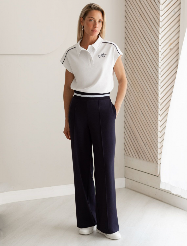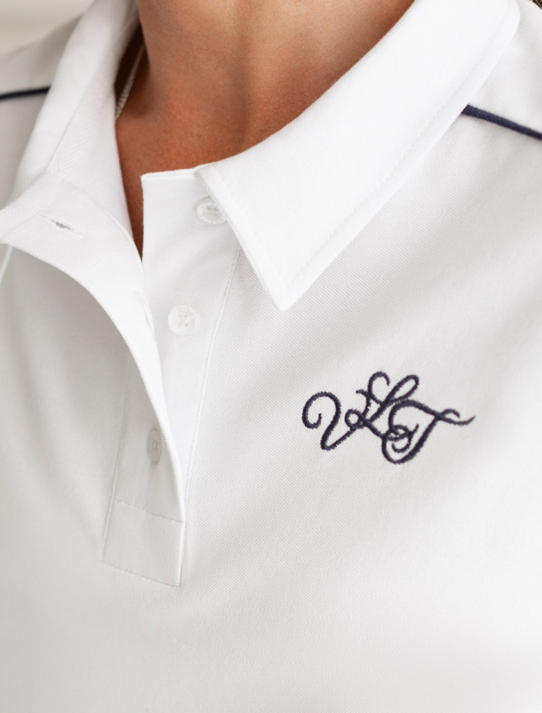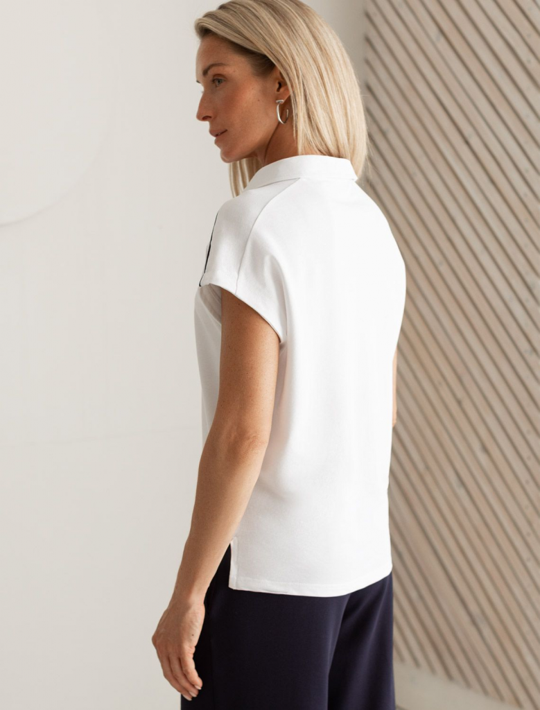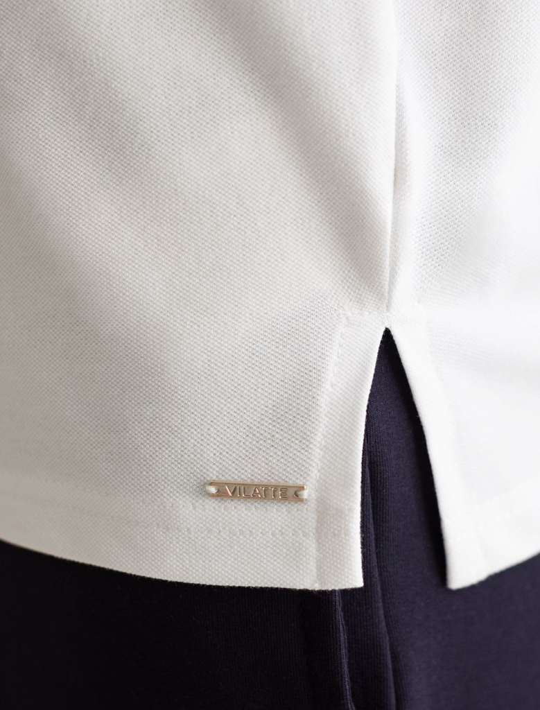 Футболка-поло выполнена из фактурного трикотажа. Модель с цельнокроеным рукавом дополнена вышитым логотипом и контрастными полосками из основного полотна по плечам. Свободный силуэт подходит для любой фигуры, хорошо смотрится в заправку с брюками и юбками теннисной коллекции. Идеально с джинсами в повседневном аутфите.