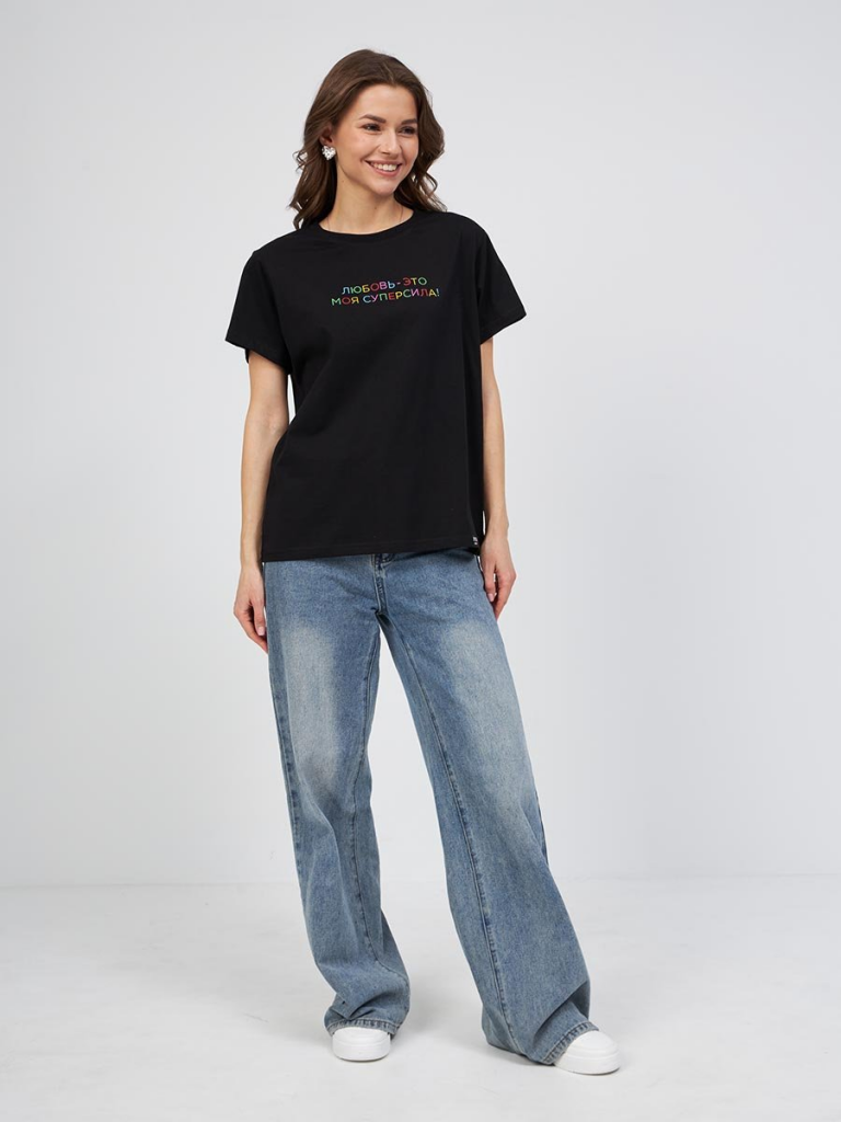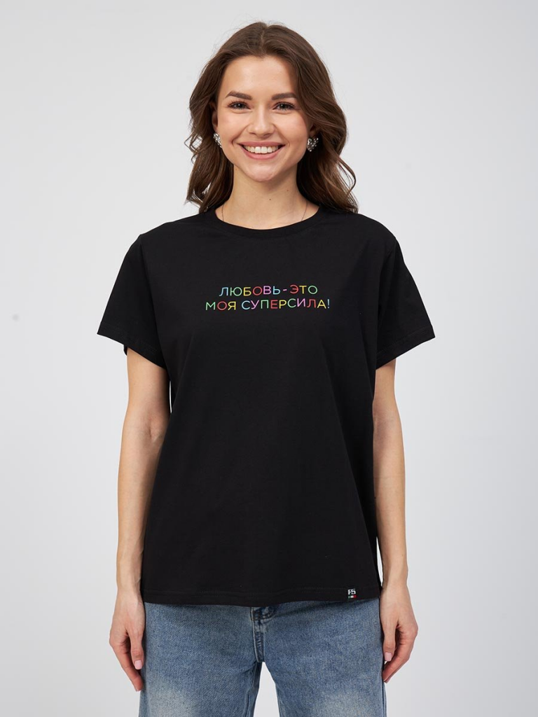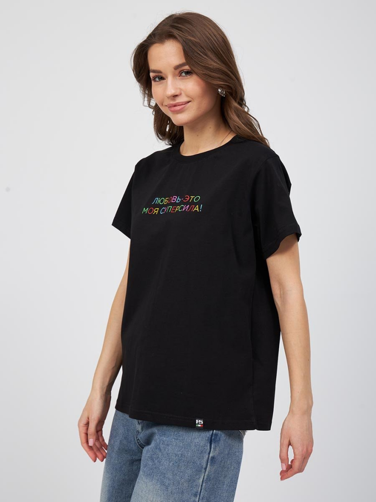 Для встречи с о своим парнем!Женская футболка F5, Oversize fit (свободный силуэт), круглый вырез горловины, короткий цельнокроеный рукав. Выполнена из классического трикотажного полотна.