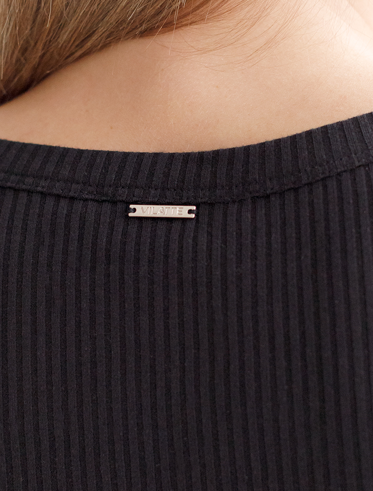 Футболка выполнена из трикотажа в широкий рубчик. Модель с круглым вырезом. Эластичный хлопковый трикотаж сидит по фигуре, не сковывает движений и очень комфортный в носке. Фактура вертикальных полос визуально стройнит и вытягивает силуэт. Базовое изделие хорошо впишется в любой гардероб. Идеально подходит для многослойных образов.