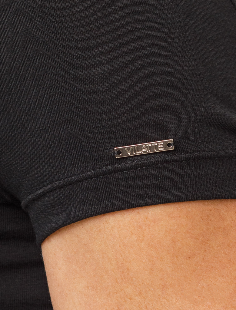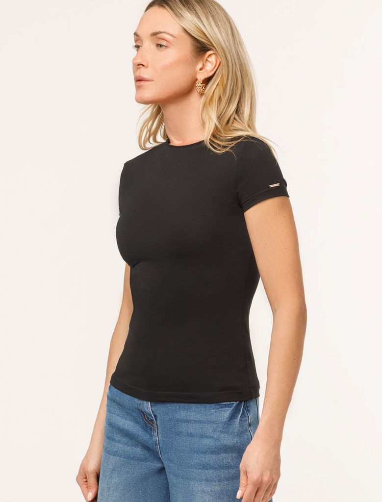 Футболка выполнена из премиального хлопка, дополнена металлическим логотипом бренда на рукаве.Модель идеально сидит по фигуре не сковывая движения. Хлопковый трикотаж поддерживает оптимальную температуру тела, поэтому в изделии будет комфортно в течении всего дня. Наличие эластана в составе гарантирует формоустойчивость. Базовая модель впишется в повседневные образы и подойдет для офисного дресс-кода.