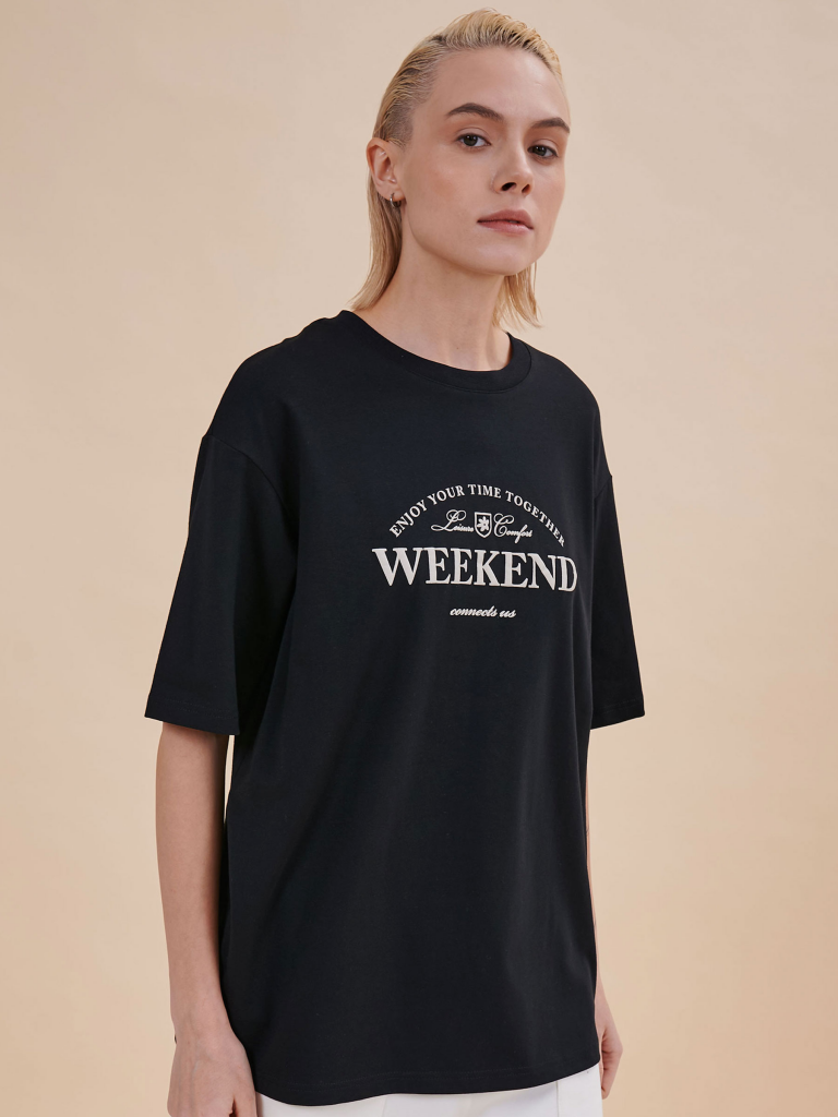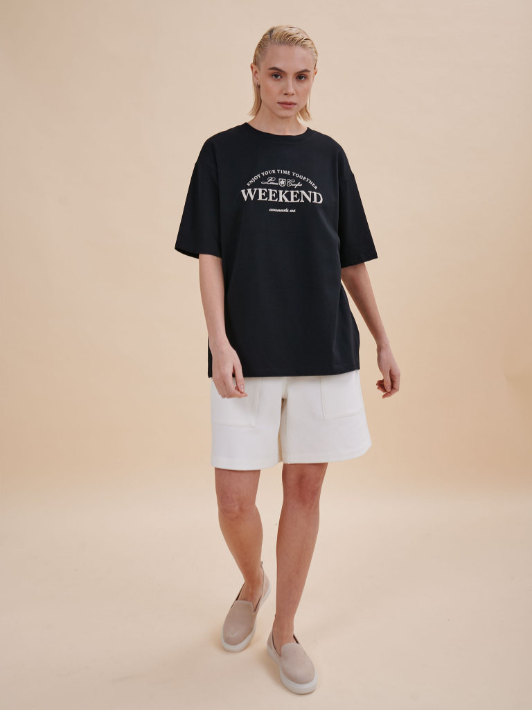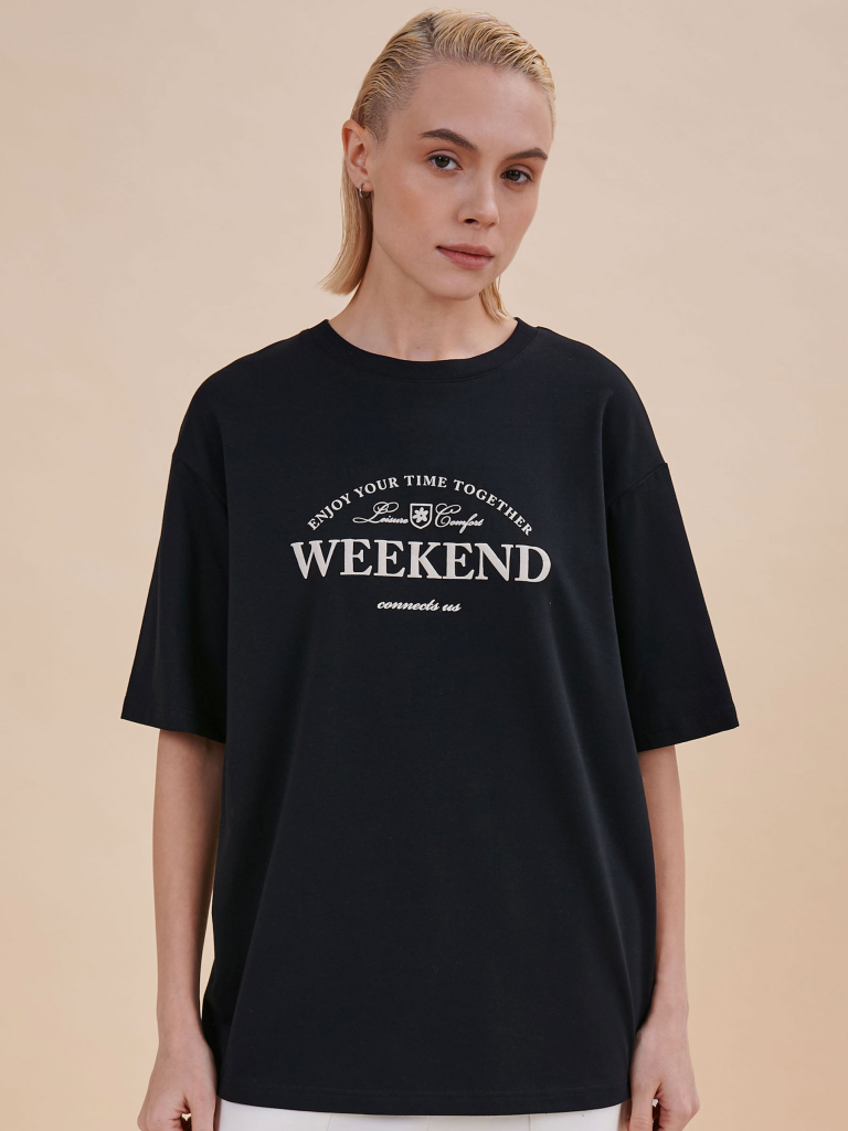 Женская футболка с принтом. Футболка оверсайз со спущенным плечом подарит вам комфорт и свободу движения. Джемпер такого силуэта скрывает недостатки фигуры и подчёркивает достоинства. Майка с удлинёнными широкими рукавами — один из актуальных модных трендов сезона. Она неприхотлива в уходе. Трикотажная футболка украшена трендовым принтом в университетском стиле по переду, надписи переводится: "наслаждайтесь временем, проведённым вместе", "досуг, комфорт", "выходные на объединяют". Принт качественный и стойкий — без проблем переносит многочисленные стирки. В составе ткани преобладает высококачественный хлопок — футболка мягкая, приятная на ощупь и позволяет коже дышать. Эластан помогает изделию надолго сохранить первозданную форму. Джемпер представлен в следующих актуальных цветах: чёрный, голубой, синий, жёлтый, белый, зелёный, бежевый. Размерная линейка: XS (42): S (44): M (46): L (48): XL (50). Модель идеальна и для женщин, и для девушек, и для девочек-подростков. Базовая футболка оверсайз универсальна, отлично подходит для работы, учёбы, спорта, прогулок, отдыха, а также для дома и сна. Хлопковая футболка легко сочетается с различными брюками и шортами. Её можно носить летом, зимой и в демисезон (осенью и весной). Модная футболка— это прекрасный подарок сестре, подруге или маме на любой праздник. Выбирайте нужный размер по таблице размеров на фото. Цвет товара на экране вашего устройства может отличаться от цвета изделия вживую.