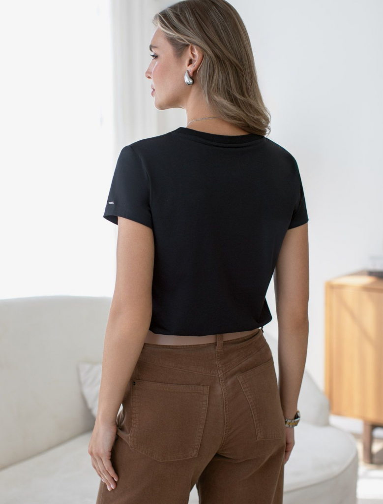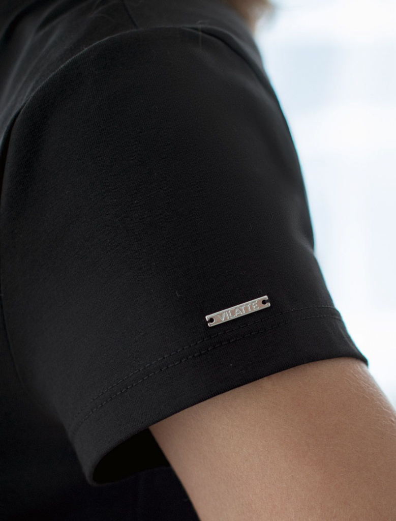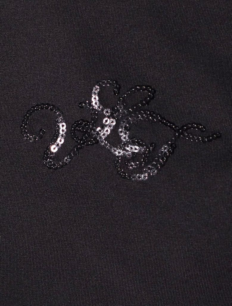 Стильная базовая футболка черного цвета с серебристым принтом пайетками выполнена из плотного хлопка с эластаном для комфортной посадки на любую фигуру. Прямая футболка классического кроя с круглым вырезом, прекрасно подходит для разных типов фигуры, в том числе и на большие размеры. Мягкость хлопка вместе с небольшой долей эластана гарантирует идеальную посадку и свободу движений. Легкая натуральная дышащая ткань премиального качества делает футболку с коротким рукавом идеальным вариантом для повседневной носки дома, на работу или офис. Однотонная футболка дополнена авторским аккуратным принтом, который придает праздничный и элегантный вид без лишней вычурности. Блестящий принт аккуратно украшает, добавляя изысканный акцент и создавая легкий мерцающий эффект. Эта эффектная футболка станет отличным выбором на праздник, подчеркивая образ сияющей и уверенной в себе девушки или женщины. Если вы ищете комфортный и одновременно привлекательный наряд для особых моментов, эта футболка станет надежным решением, п