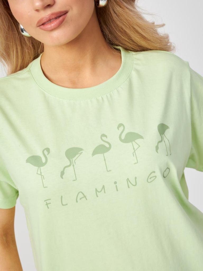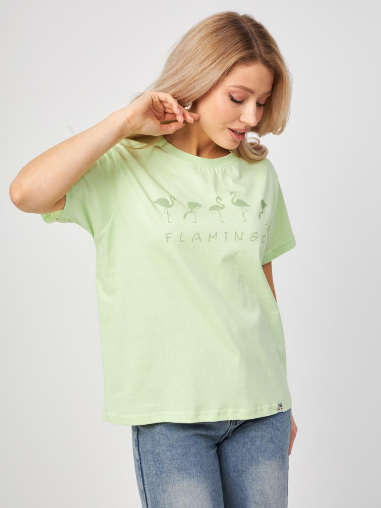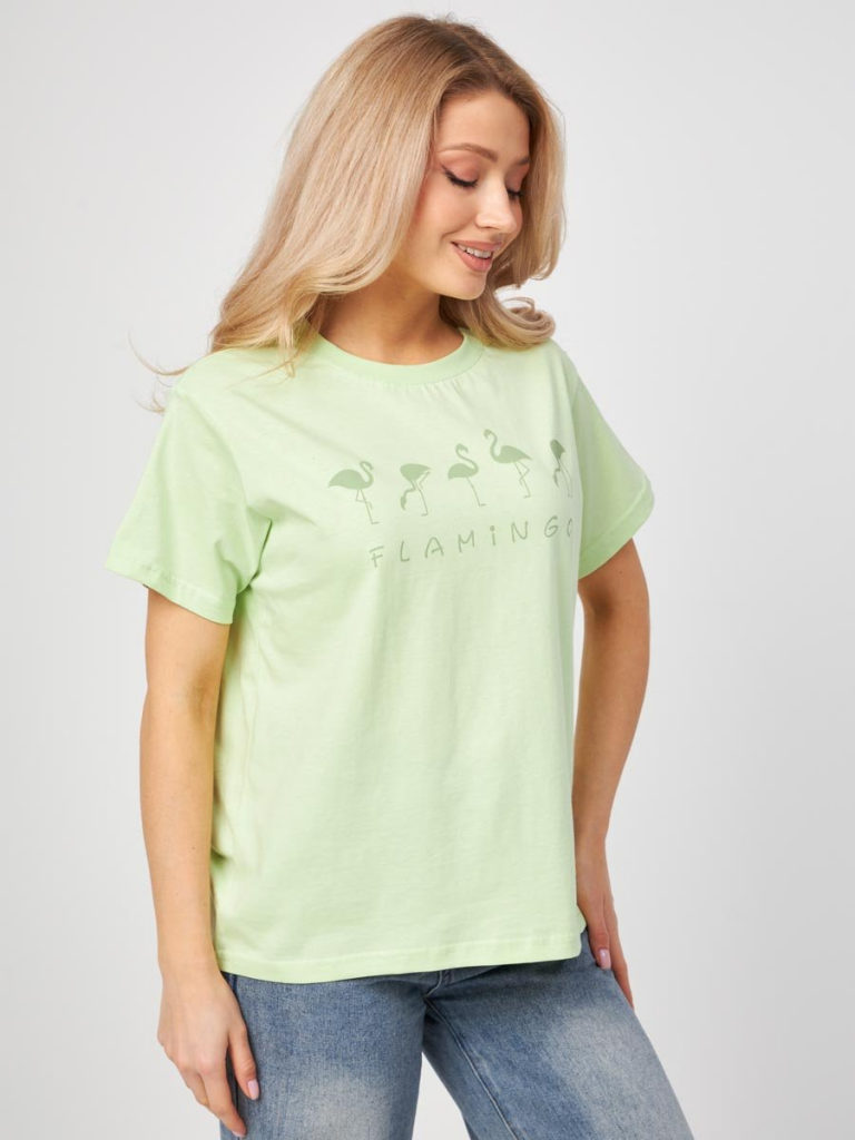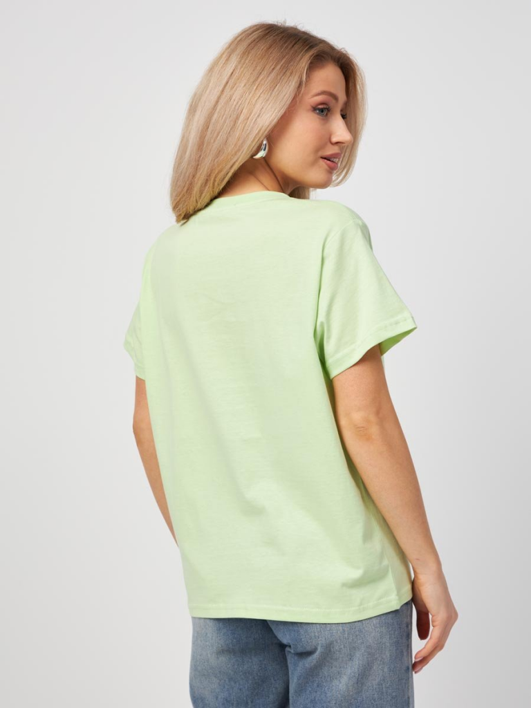 Женская футболка F5, Oversize fit (свободный силуэт), круглый вырез горловины, короткий цельнокроеный рукав. Выполнена из классического трикотажного полотна.