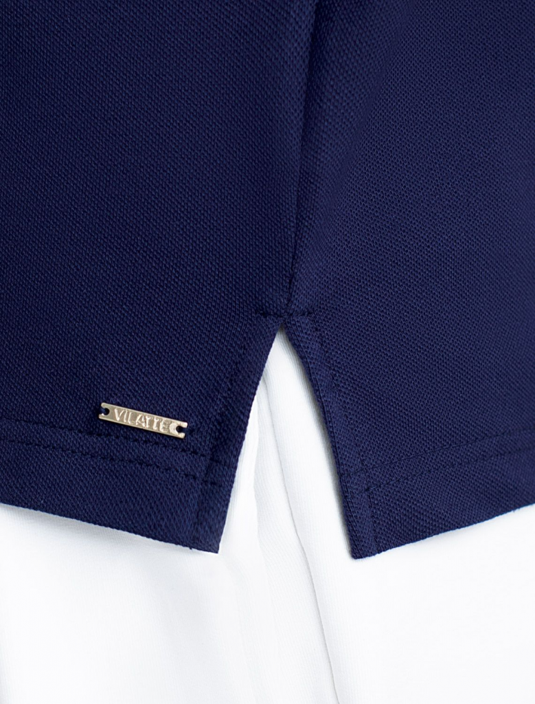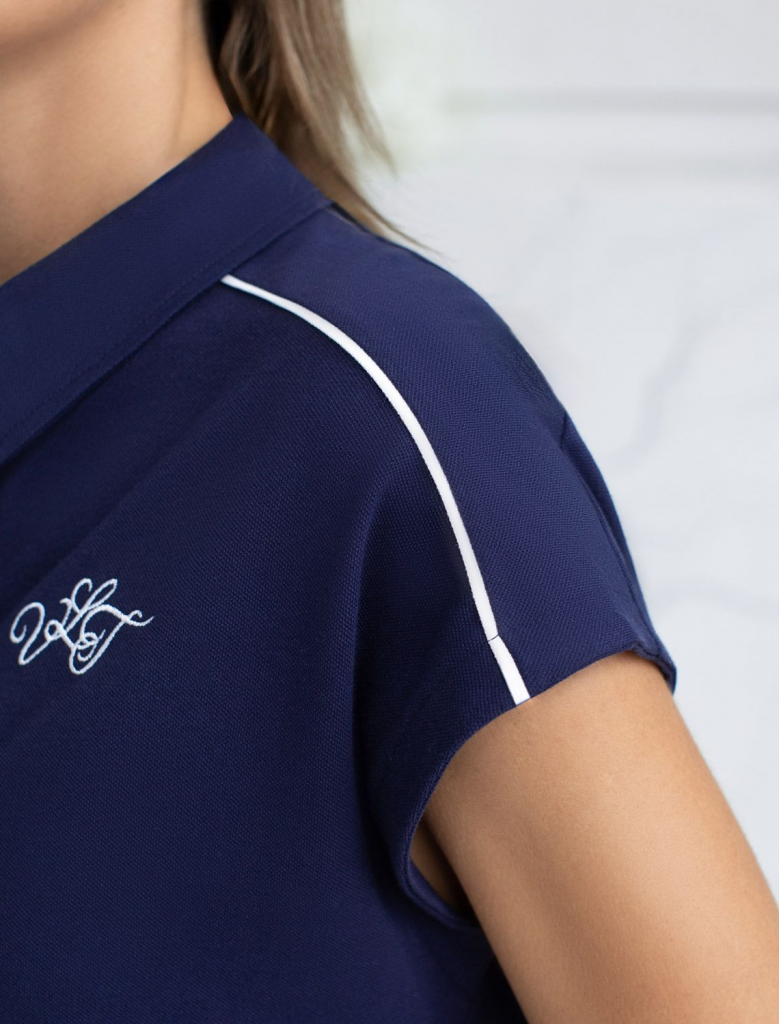 Футболка-поло выполнена из фактурного трикотажа. Модель с цельнокроеным рукавом дополнена вышитым логотипом и контрастными полосками из основного полотна по плечам. Свободный силуэт подходит для любой фигуры, хорошо смотрится в заправку с брюками и юбками теннисной коллекции. Идеально с джинсами в повседневном аутфите.