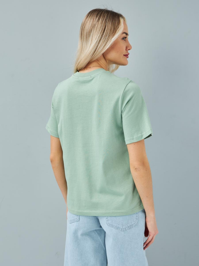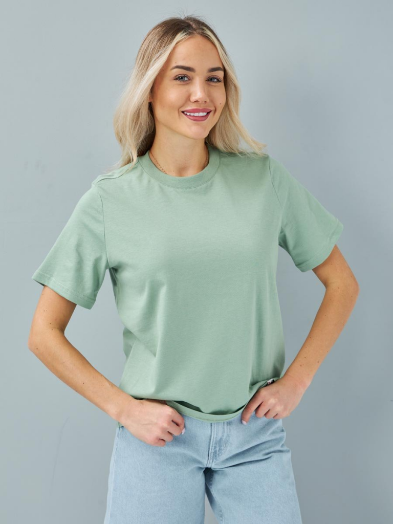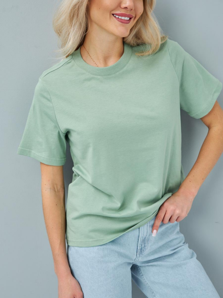 Женская футболка F5, Comfort fit (свободный силуэт), круглый вырез горловины, короткий рукав. Выполнена из классического трикотажного полотна.