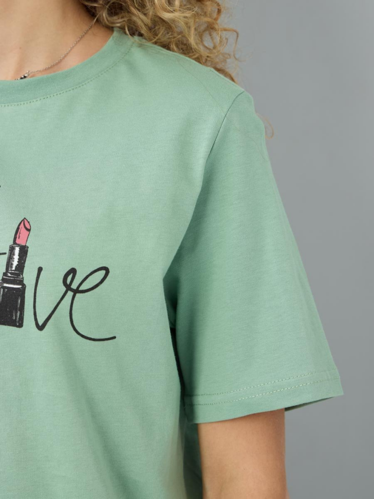 Женская футболка F5, Comfort fit (свободный силуэт), круглый вырез горловины, короткий рукав. Выполнена из классического трикотажного полотна.