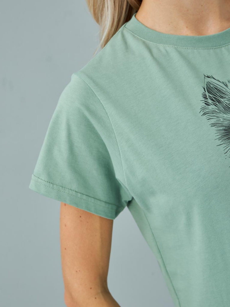 Женская футболка F5, Oversize fit (свободный силуэт), круглый вырез горловины, короткий цельнокроеный рукав. Выполнена из классического трикотажного полотна.