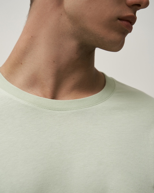 Футболка прямого силуэта. Укрепление по горловине спинки. Горловина из рибаны, по переду горловины отстрочка.