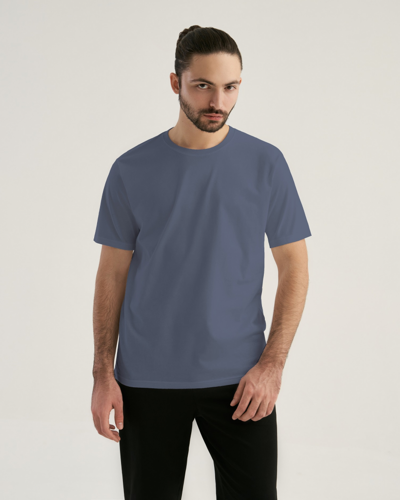 Классическая мужская футболка прямого силуэта. Горловина окантована рибаной