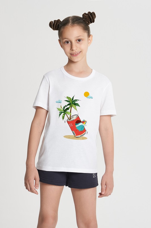 Футболка свободного кроя, втачной рукав. Горловина окантована бейкой из рибаны