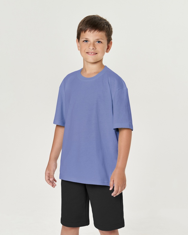 Футболка унисекс детская. Спущенное плечо. Втачной рукав. Укрепление горловины спинки и плечевых швов бейкой из основной ткани.