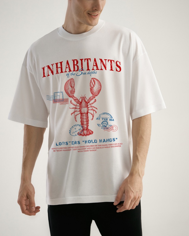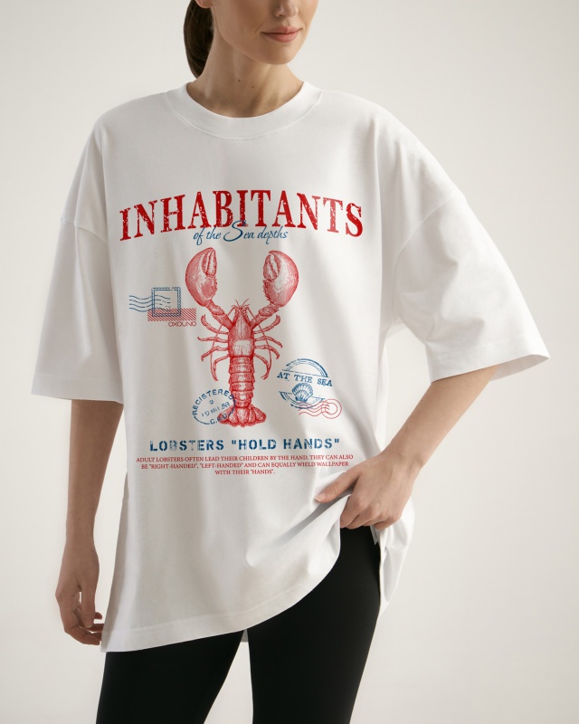 Футболка свободного силуэта. Спущенное плечо. Горловина из двух деталей, из рибаны.