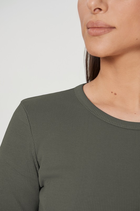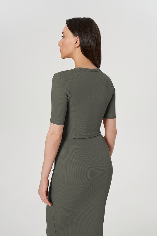 Укороченная футболка CROP. Отстроченные рельефные швы по полочке и спинке. Втачной рукав с открытым нижним срезом.