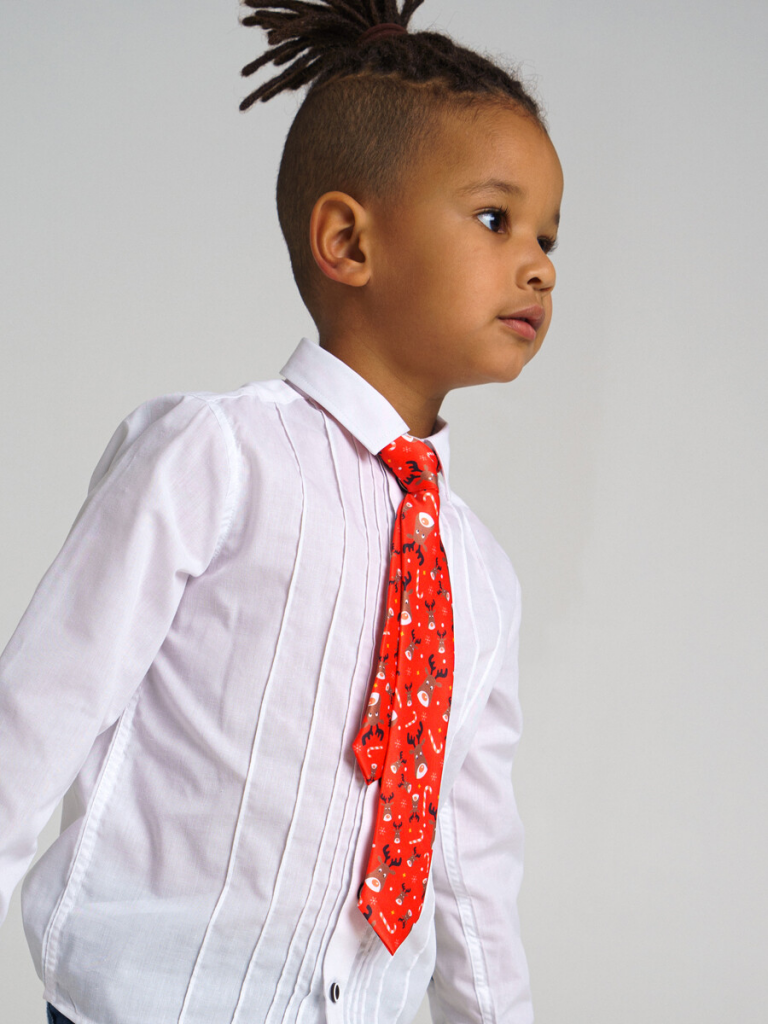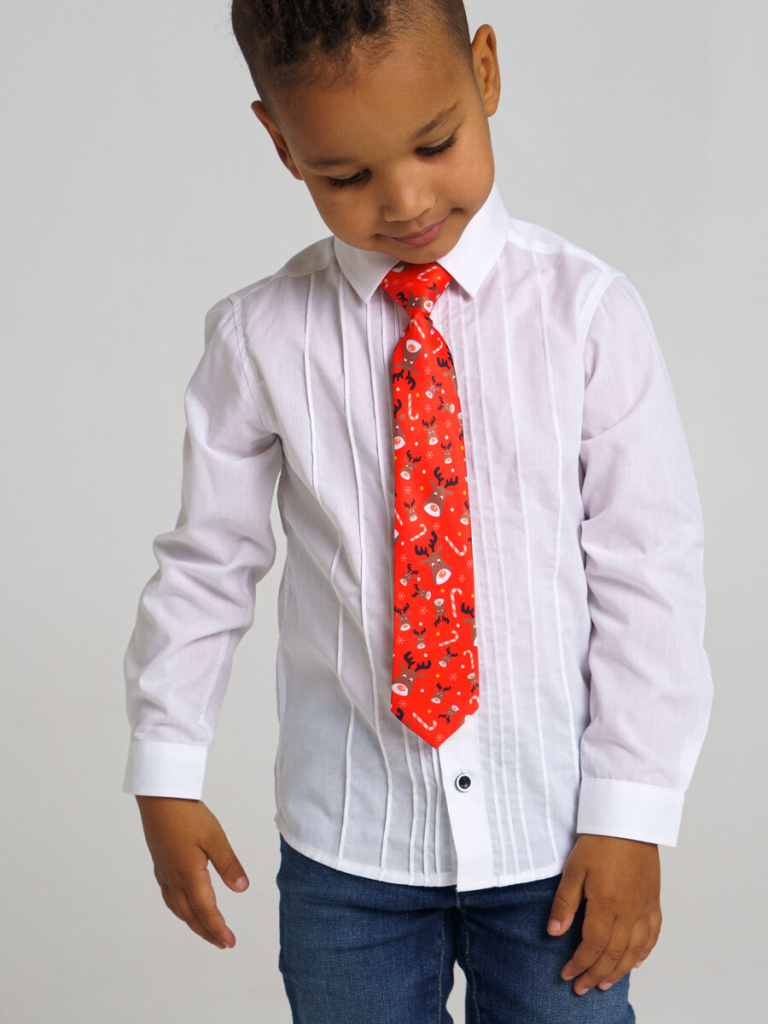 Аксессуар для новогоднего образа - атласный галстук с принтом. Удобная застёжка поможет быстро и просто надеть или снять элегантный аксессуар.
