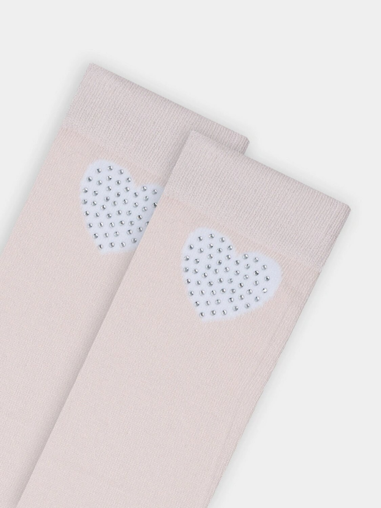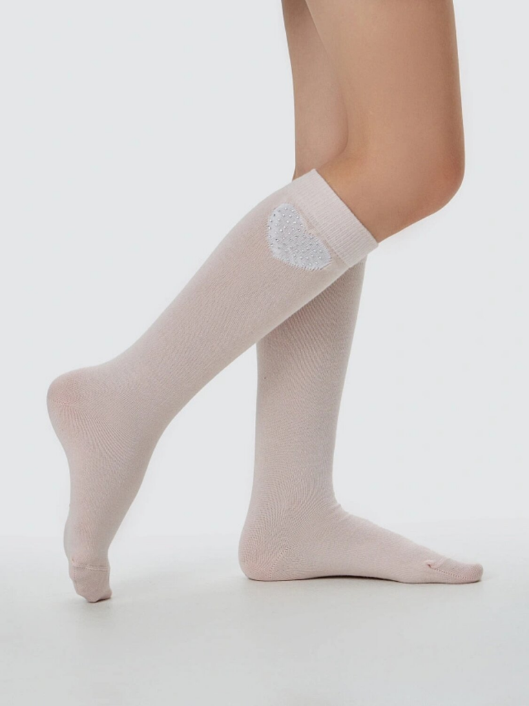 Утонченный рисунок в виде сердечка и аккуратная печать стразами добавляют образу праздничный акцент. Эластичная резинка облегает ножку, не оставляя следов. Эти гольфы подходят для праздников или повседневной носки — они сочетают легкость и нарядный вид.