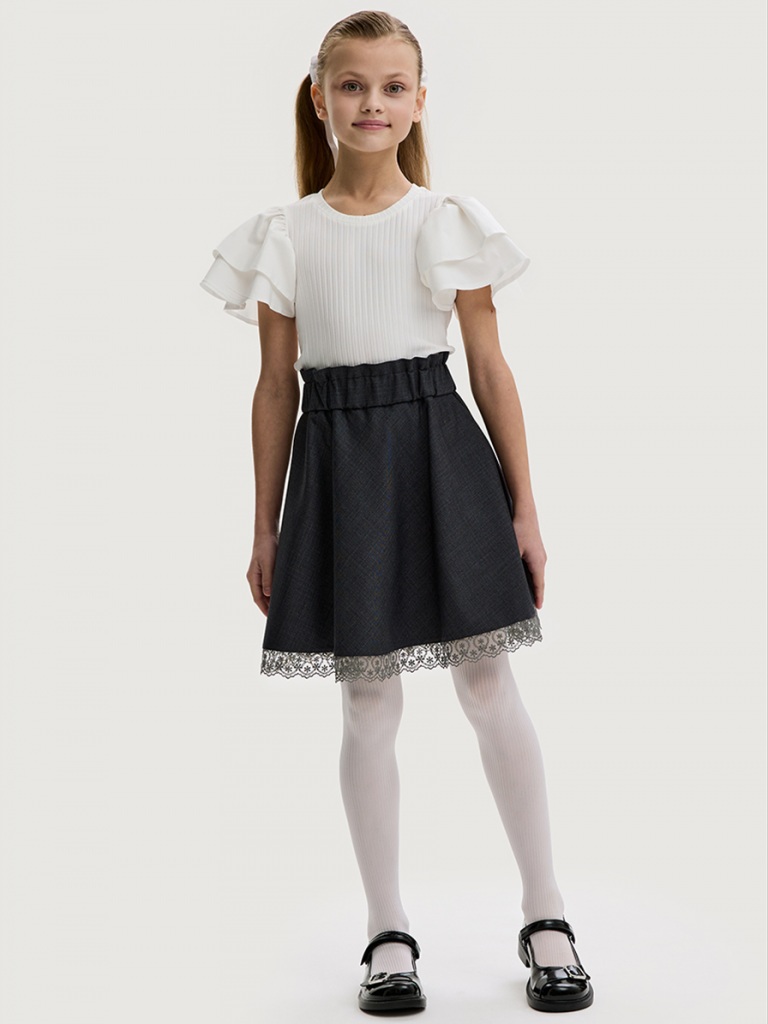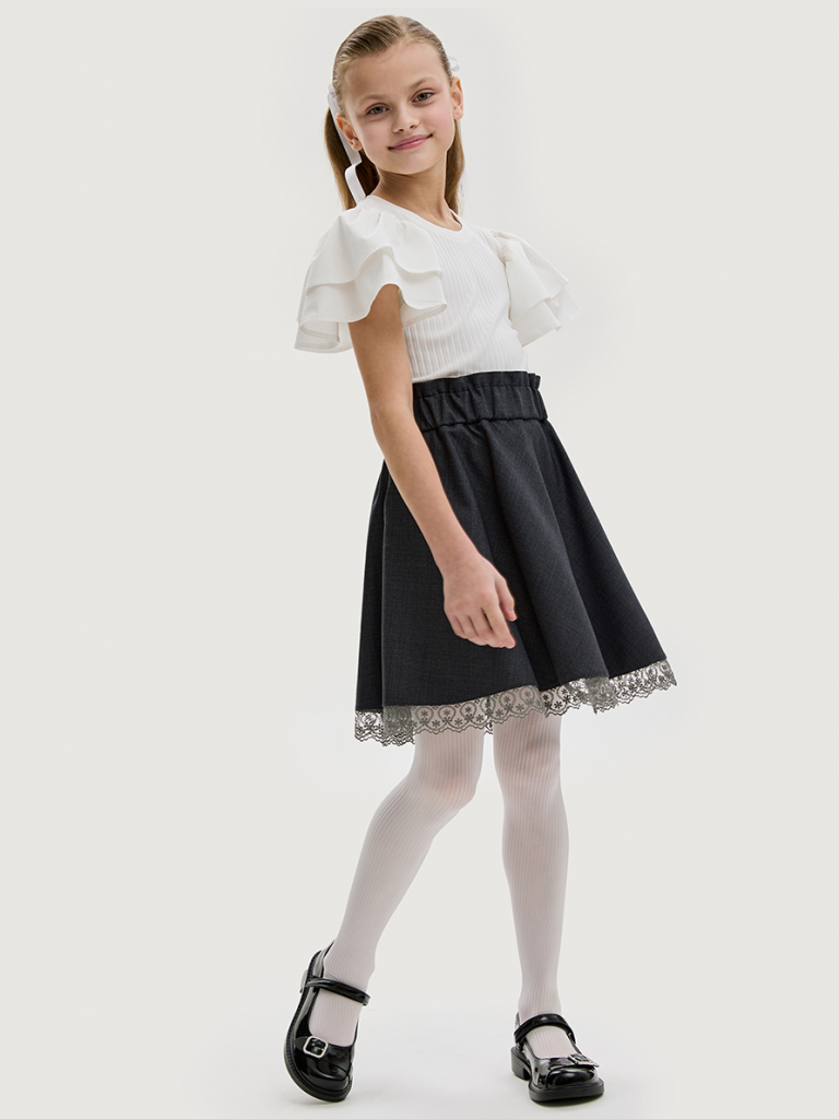 Мы все продумали до мелочей, поэтому верхняя часть пояса с имитацией оборки, нижний край юбки украшен притачным кружевом.