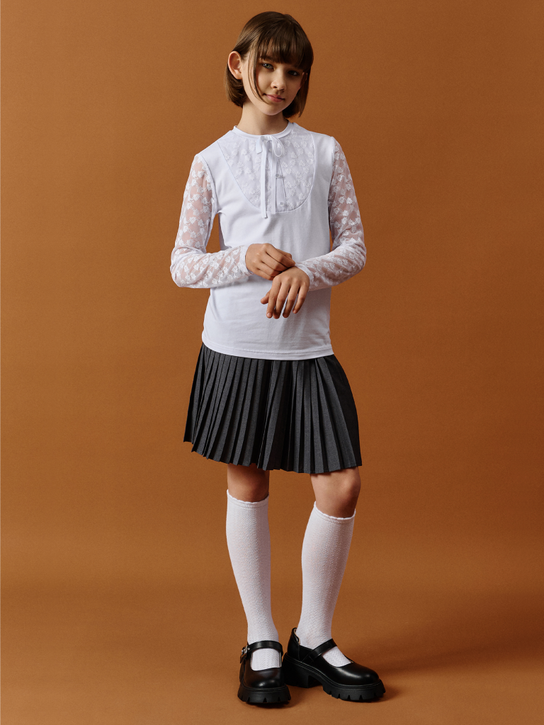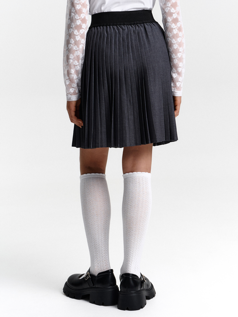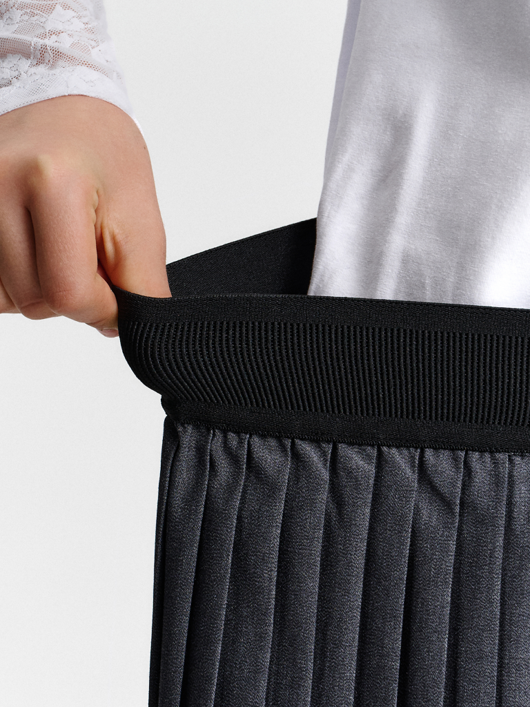 Юбка в складку — идеальный выбор для школьной формы и повседневной носки. Мелкое плиссе шириной 5 мм создает аккуратный и ровный рисунок, который не мнётся и сохраняет форму после целого учебного дня. Такая плиссировка придаёт лёгкий объём, не утяжеляя силуэт, обеспечивая комфорт и свободу движений для школьницы. Пояс юбки обработан широкой эластичной резинкой — она тянется и подстраивается под талию ребёнка, не сдавливая и не мешая в движении. Резинка помогает юбке плотно сидеть на талии, не сползать во время уроков и активных перемен. Юбка отлично подходит для школьной формы для девочек, сочетается с разными блузами и кофточками, и при этом остаётся удобной для повседневной носки после школы. Выбирайте нужный размер по таблице размеров на фото. Цвет товара на экране вашего устройства может отличаться от цвета изделия вживую.