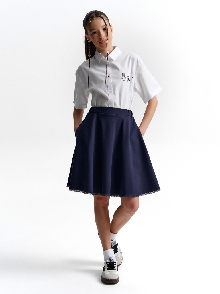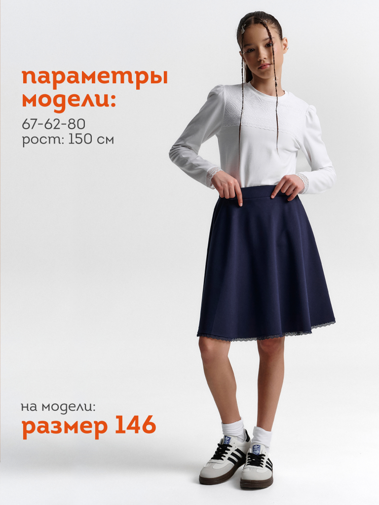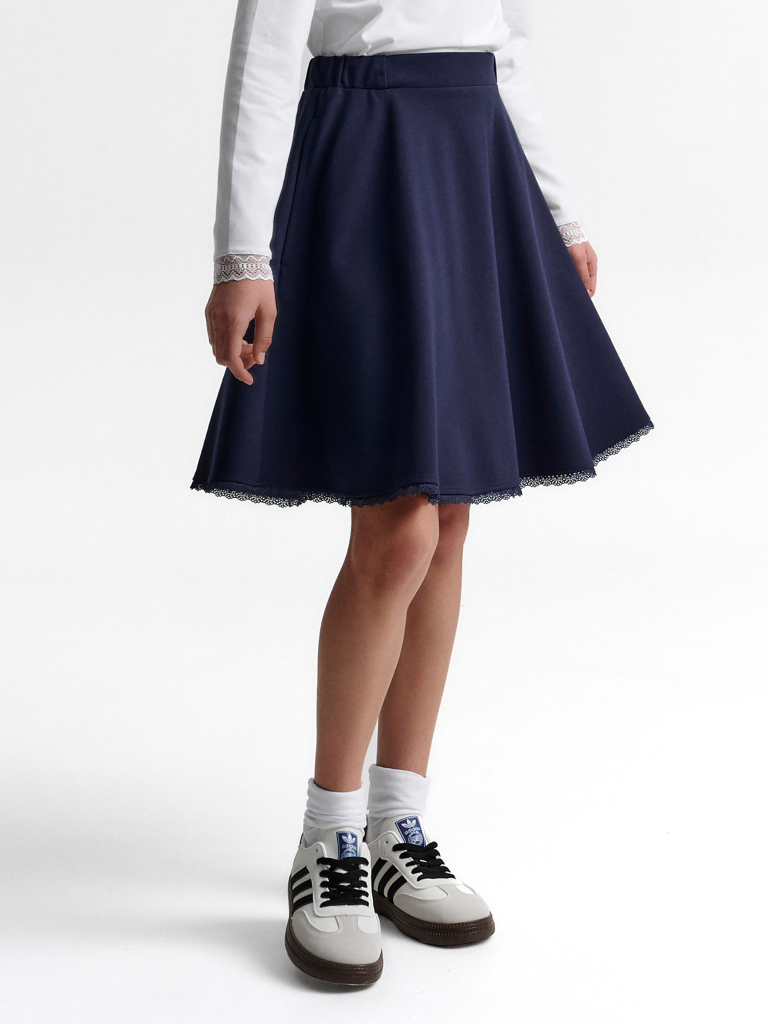 Юбка, которую ребёнок не захочет снимать и мама — не будет стирать по 10 раз! Сделана из мягкого и прочного трикотажа — она легко выдержит активные школьные будни и при этом всегда будет выглядеть свежо и аккуратно. Расклешённый крой дарит свободу движений и не сковывает игру и учёбу. По низу аккуратное узкое кружево — маленький модный акцент, который делает юбку особенно стильной и подходит для школы и праздников. В боковых швах спрятаны кармашки — куда удобно положить мелочи или запасную резинку для волос. По талии пояс — спереди гладкий, а с боков и сзади мягко растягивается на резинке, которая не давит, а подстраивается под фигуру. Для идеальной посадки внутри есть дополнительная резинка с пуговицами — юбка всегда сидит как надо, даже если ребёнок подрастёт. Эта юбка — универсальный помощник для школы, который легко сочетается с любой блузкой, рубашкой или жилеткой. А ещё она очень проста в уходе — быстро стирается и не теряет форму. Сделайте выбор в пользу удобства, моды и практичности — дайте вашей девочке комфорт и уверенность каждый школьный день!