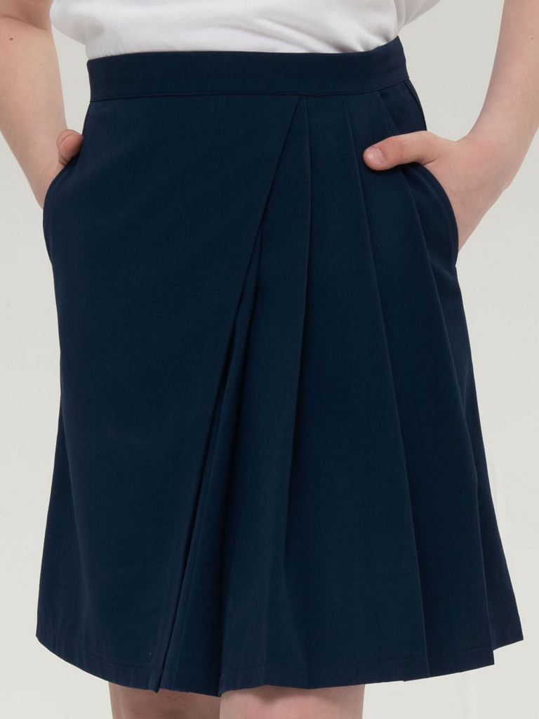 Юбка для девочек в классическом силуэте трапеция. Идеальная база для школы и выходов в свет. Спереди изделия присутствует имитация элегантного запаха. Плотный материал на основе вискозы не просвечивает и не ограничивает свободу движений ребенка дополнительным подкладом. Сзади изделие застегивается на потайную молнию и аккуратную пуговицу, а удобные боковые карманы позволяют спрятать полезные мелочи.