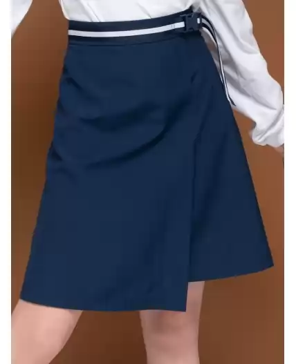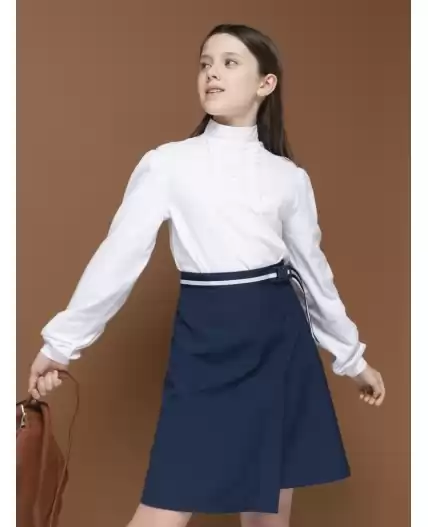 Юбка школьная из костюмной практичной ткани. Без подклада, с имитацией запАха спереди. Чтобы удобно было надевать, добавлены молния и пуговица. А пояс с регулировкой не передавливает живот. Стильный акцент модели декор с красивой тесьмой и удобной крепкой застежкой. Все это позволяет носить эту юбку не только в школу, но и в составе образов casual и спорт.