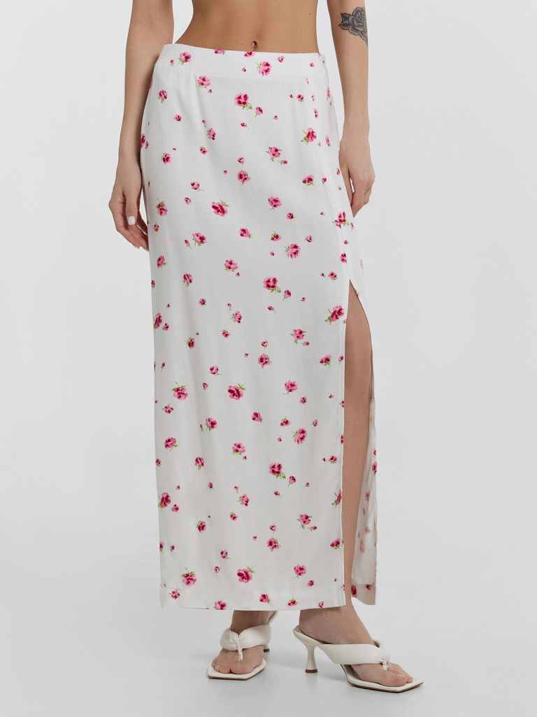 Женская юбка прямого силуэта — стильная и универсальная модель для любого случая. Длина миди делает ее идеальным выбором как для повседневных, так и для более официальных образов. Боковой разрез добавляет изделию изящности и легкой динамичности, подчеркивая женственность и создавая акцент на деталях. Застежка на потайную молнию, расположенная в левом боковом шве, гарантирует удобство и практичность, сохраняя при этом аккуратность общего дизайна. Материал изделия — вискоза, известная своей мягкостью, легкостью и способностью красиво струиться, что придает юбке элегантный и утонченный вид. Эта юбка станет отличным дополнением гардероба, легко комбинируясь с различными топами, рубашками или жакетами, создавая разнообразные стильные ансамбли. Рекомендуем для создания современных и элегантных образов!