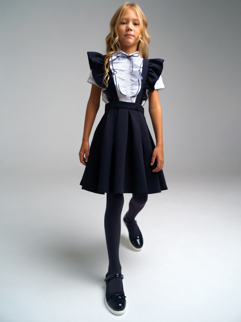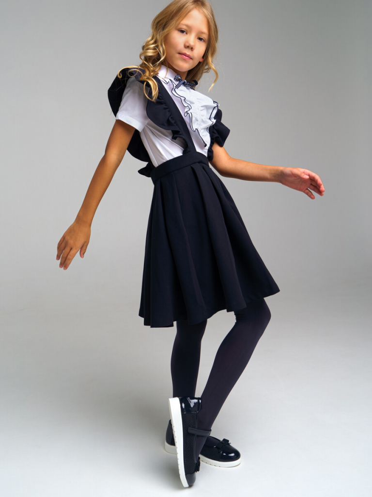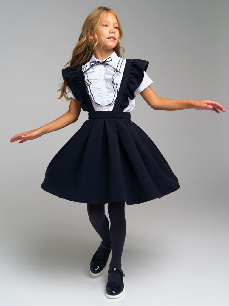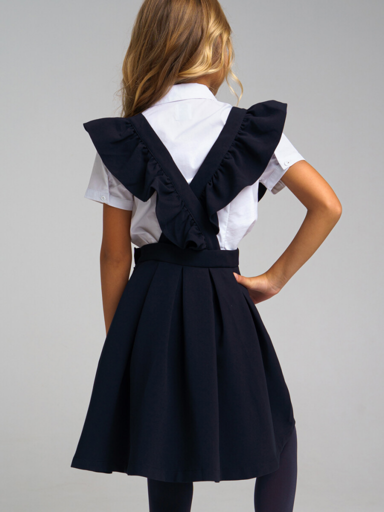 Школьный текстильный сарафан для девочки подростка. Синий текстильный сарафан идеален в школу. Платье для школы выполнено из ткани с содержанием вискозы, что обеспечивает максимальный комфорт для школьницы во время занятий. Бретели сарафана крепятся на пуговицы и снимаются при желании.