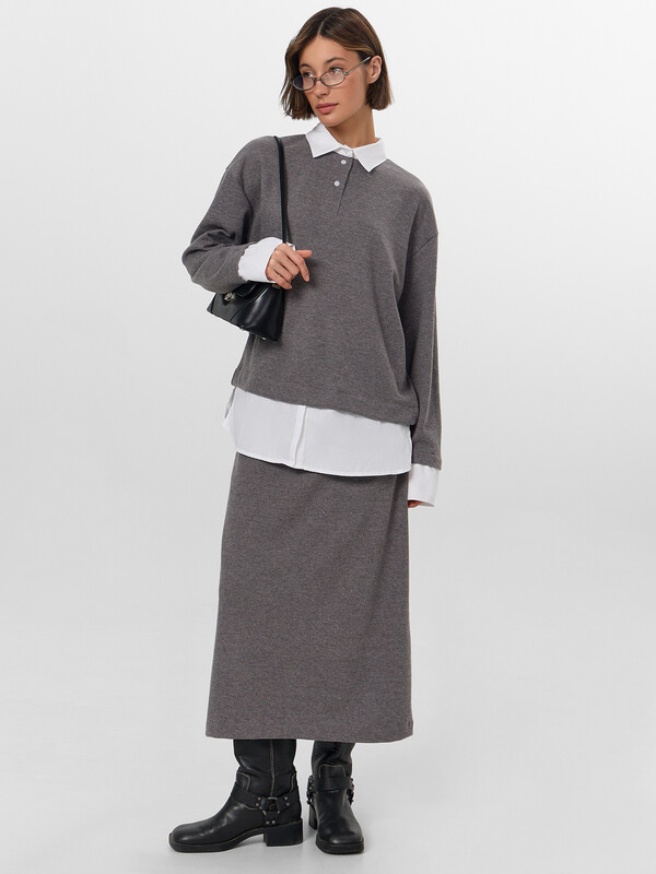 Универсальный серый оттенок становится идеальным фоном для любых комбинаций — от уютных трикотажных блузок до строгих классических рубашек. Идеальный выбор для офиса, прогулки или деловых встреч.