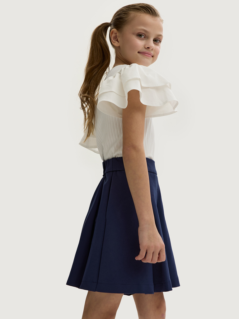 Стильная юбка шорты в складку идеально подходит для активных девочек, которые хотят выглядеть модно и чувствовать себя уверенно. Функциональность и модный дизайн, создают идеальный баланс между школьным, спортивным и модным стилем.