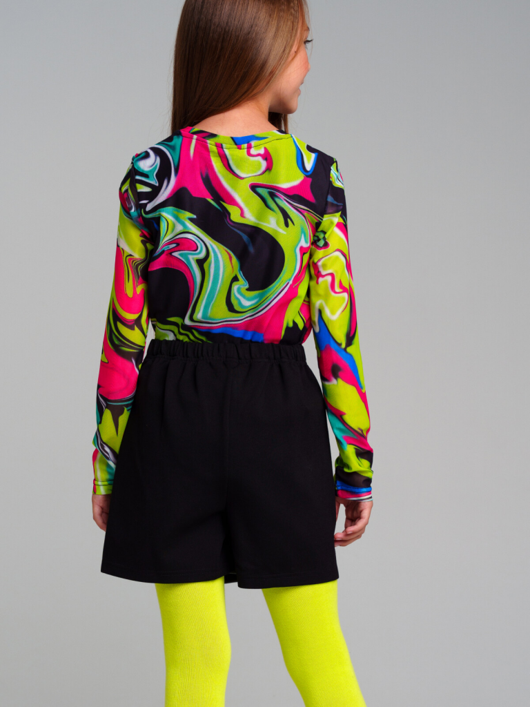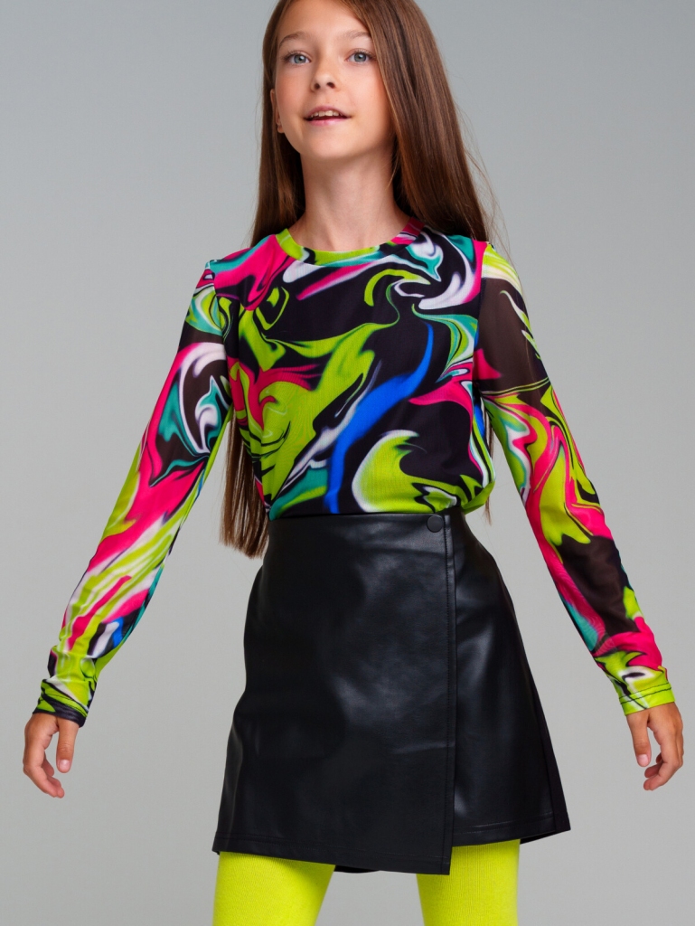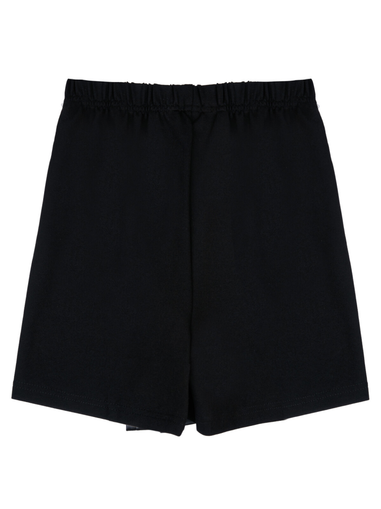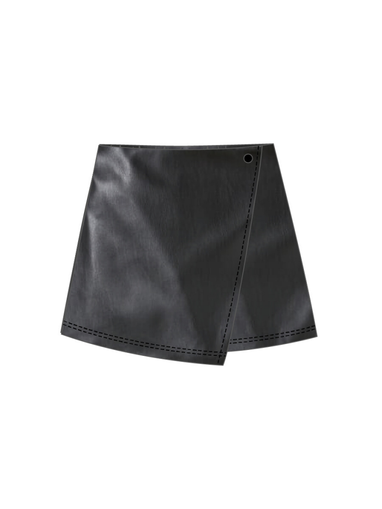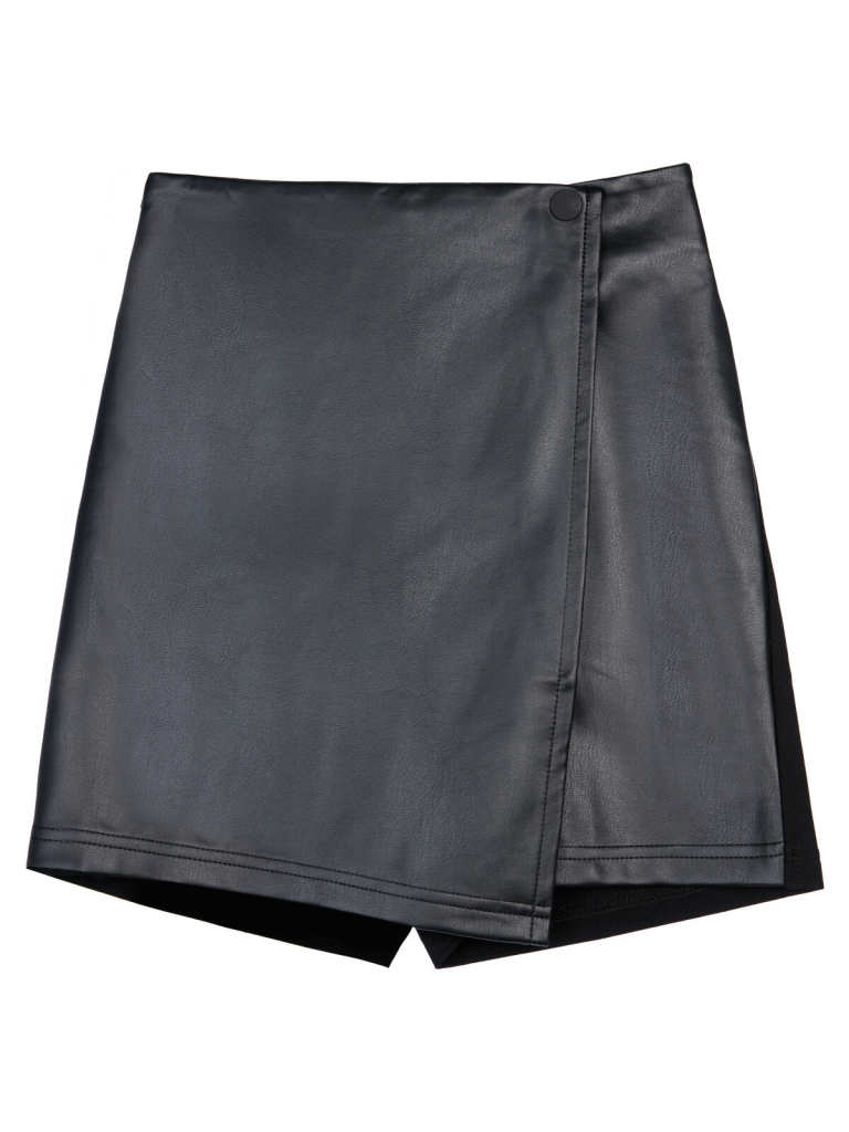 Юбка-шорты из комбинированных материалов: перед из экокожи, спинка из плотного трикотажа. Мягкий, эластичный материал, благодаря прочному плетению хорошо держит форму, не мнется, не растягивается. Эластичный пояс.