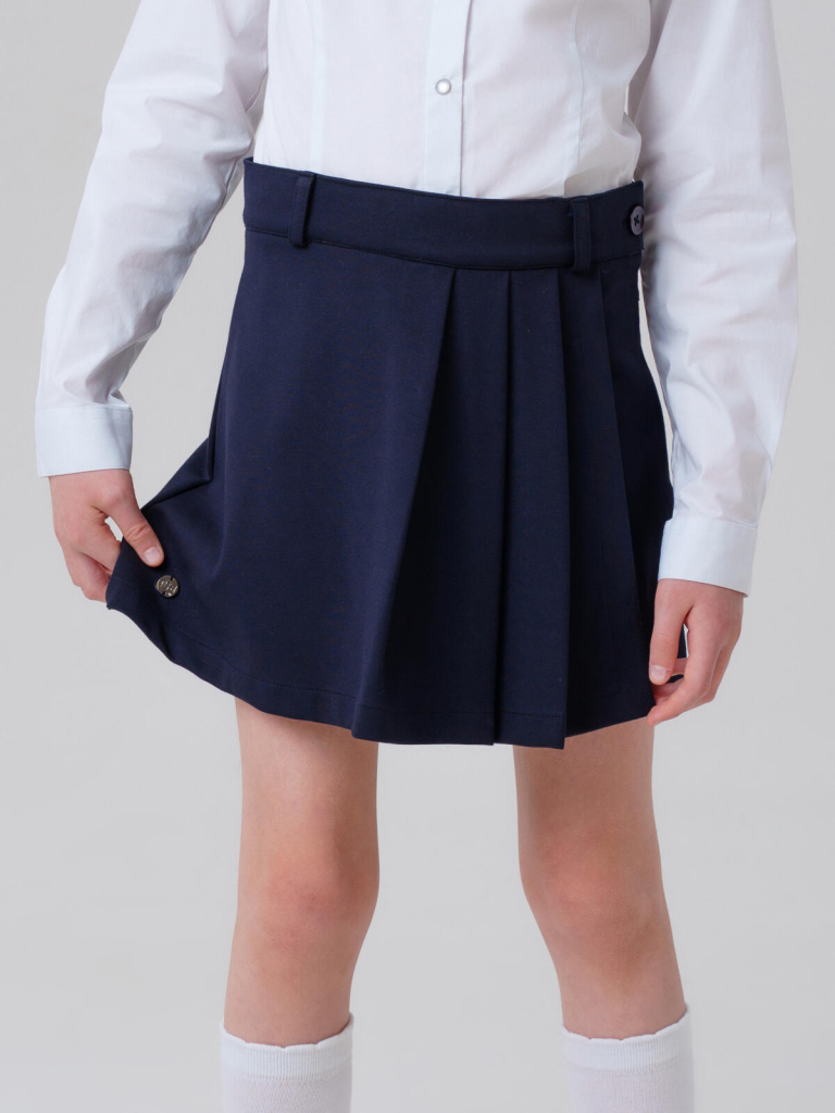 Трикотажная темно-синяя школьная юбка-шорты для девочки подростка от PlayToday — удобная и практичная альтернатива классической школьной юбке. Эта модель идеально подойдёт для активных девочек, которым важны свобода движений и аккуратный внешний вид.Преимущества модели:+ фасон «юбка-шорты»+ боковая застёжка на молнию+ мягкий трикотаж+ комфортная посадка+ два функциональных кармана+ универсальный тёмно-синий цвет+ легкий уходЭта синяя подростковая юбка-шорты для девочек сочетает строгость школьного дресс-кода с повышенным уровнем комфорта. Благодаря вшитым универсальным шортам ребёнок может свободно двигаться и не переживать за внешний вид. Модель особенно удобна в школе, на переменах, уроках труда или активности на свежем воздухе.Трикотаж хорошо тянется, не натирает и не вызывает раздражения. Такая классическая школьная юбка-шорты для подростков сохраняет форму даже после множества стирок и легко сочетается с рубашками, водолазками, жилетами и жакетами из школьной коллекции бренда.Совет по стилю: носите стильную нарядную юбку-шорты для школы с блузкой на пуговицах и жилетом от PlayToday — получится классический, но современный образ для школы, который подойдёт как на каждый день, так и для торжественных событий.Модель легко переносит регулярные стирки при температуре до 30°C, сохраняя форму.Представлена на рост 122-170 см — подойдёт для девочек от 7 до 16 лет.Модная трикотажная юбка-шорты в школу для девочки от PlayToday — отличный выбор для активной и стильной ученицы. Удобство, уверенность и свобода в одном образе.