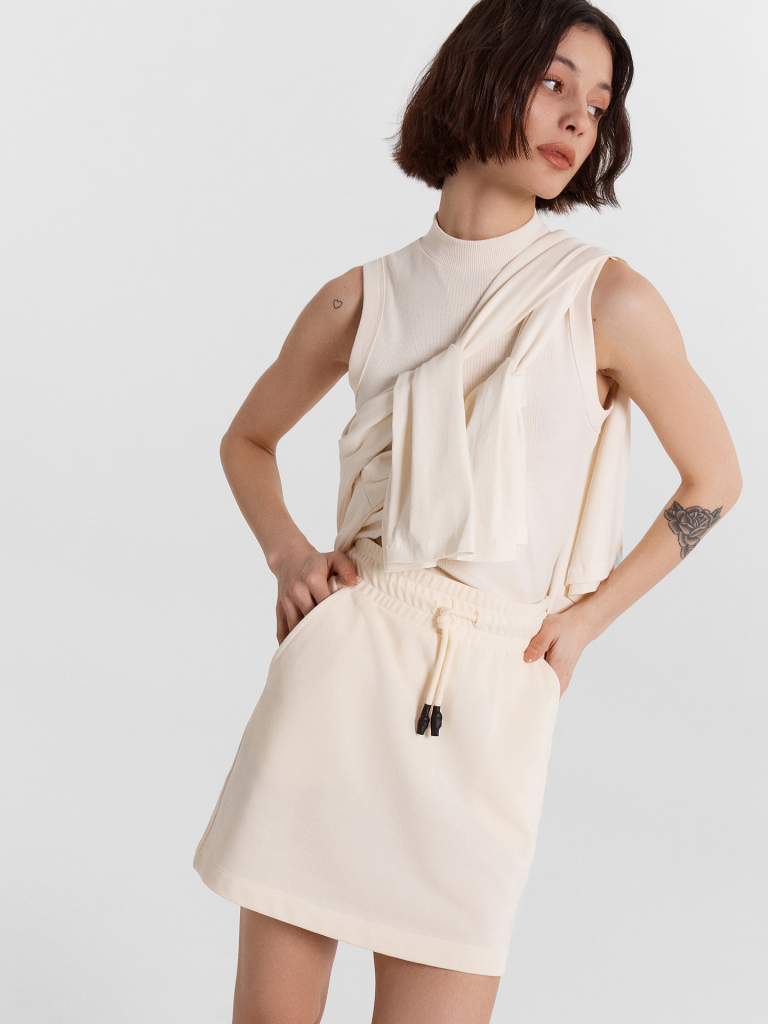Женская юбкой прямого силуэта из футера – стильная и удобная модель для создания спортивных образов! Она сочетает в себе практичность и современный дизайн. Эластичный пояс на кулиске обеспечивает идеальную посадку и комфорт в течение дня, а боковые карманы добавляют функциональности, позволяя хранить небольшие предметы под рукой. Длина выше колена придает модели свежий и динамичный вид, идеально подходящий для активного отдыха или повседневного ношения. Эта юбка отлично сочетается с футболками, худи или спортивными топами, создавая стильные и удобные образы на любой случай.
