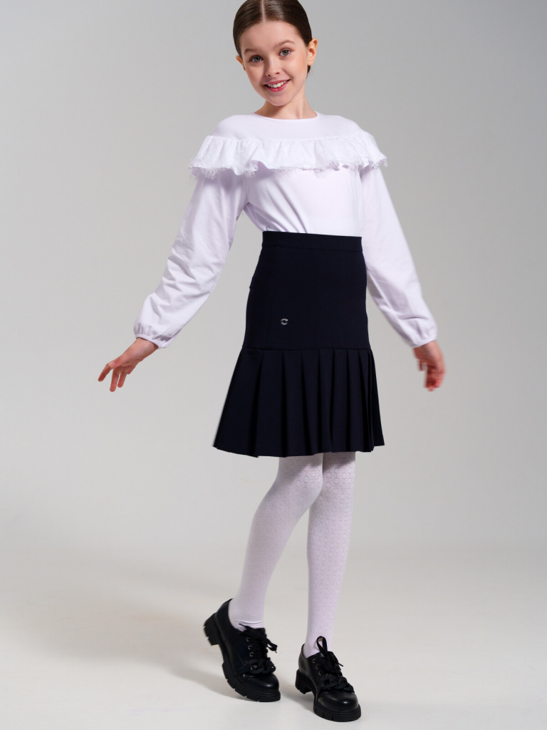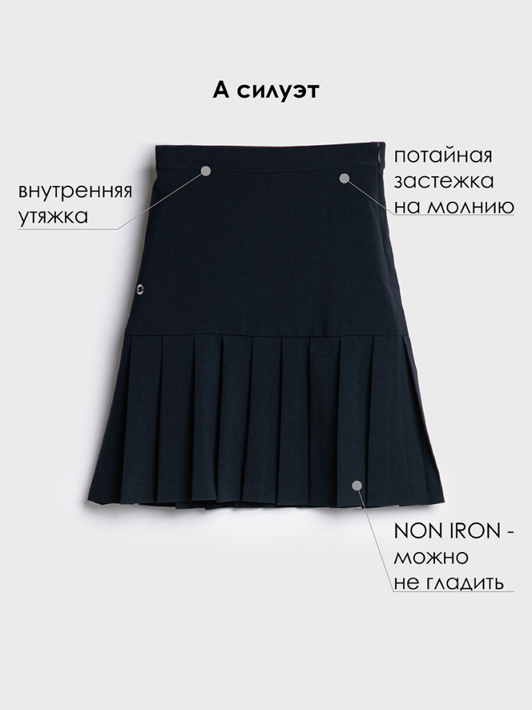 Классическая школьная юбка для девочки подростка. Синяя юбка в складку - стильный атрибут школьницы на каждый день! Именно такой и должна быть юбка в школу - лаконичной и удобной, простой и изящной, отлично сочетающейся с любым верхом. Юбка А-силуэта для школы выполнена из ткани non-iron, которая не требует глажки после стирки. Благодаря внутренней утяжке, юбка идеально садится по фигуре. Застежка на потайную молнию.