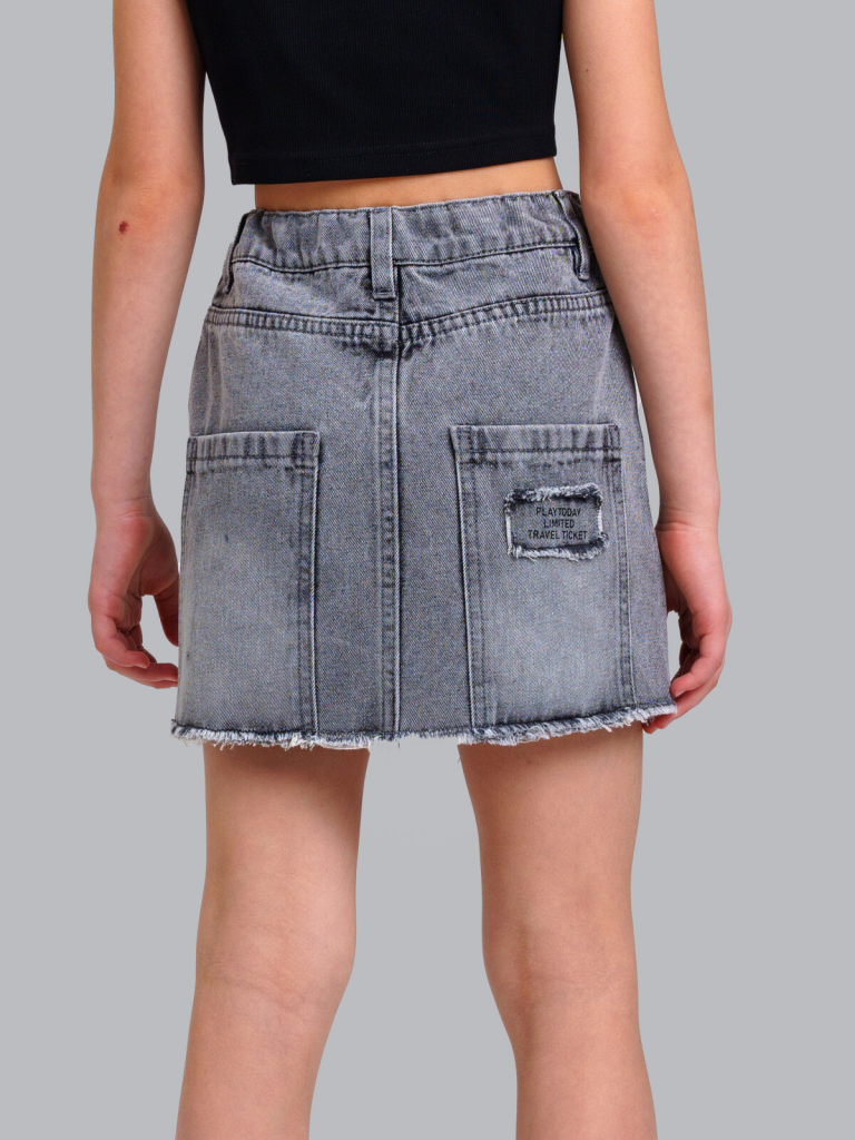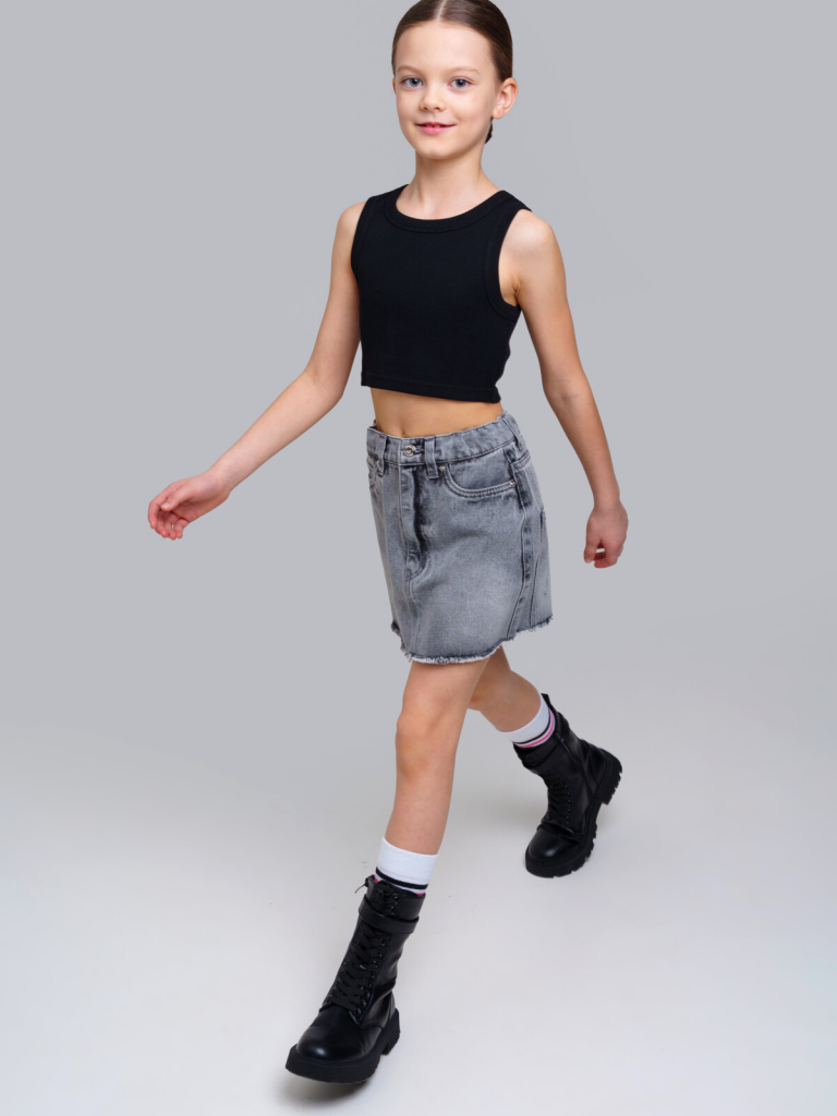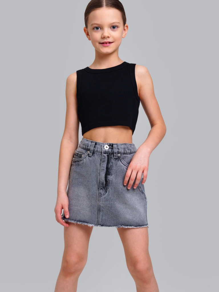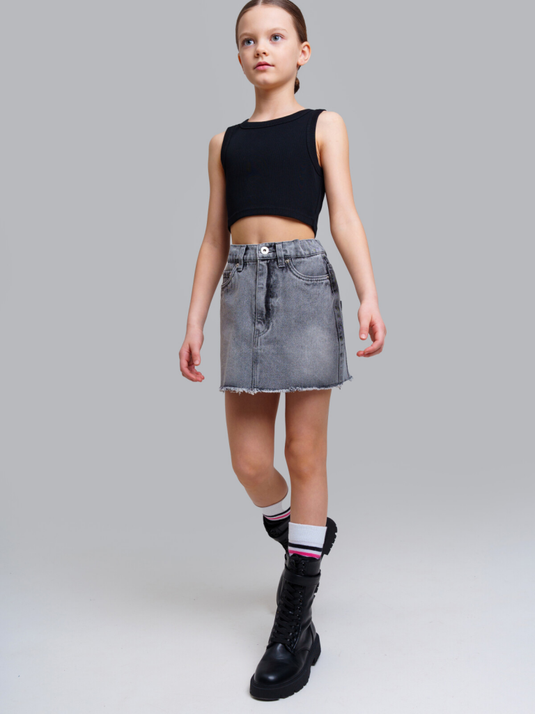 Джинсовая юбка для девочки подростка. Пояс с застежкой на молнию и болт. Внутренняя утяжка на талии. Функциональные накладные карманы. Пояс со шлевками для ремня. Модель выполнена из качественного и плотного текстиля.