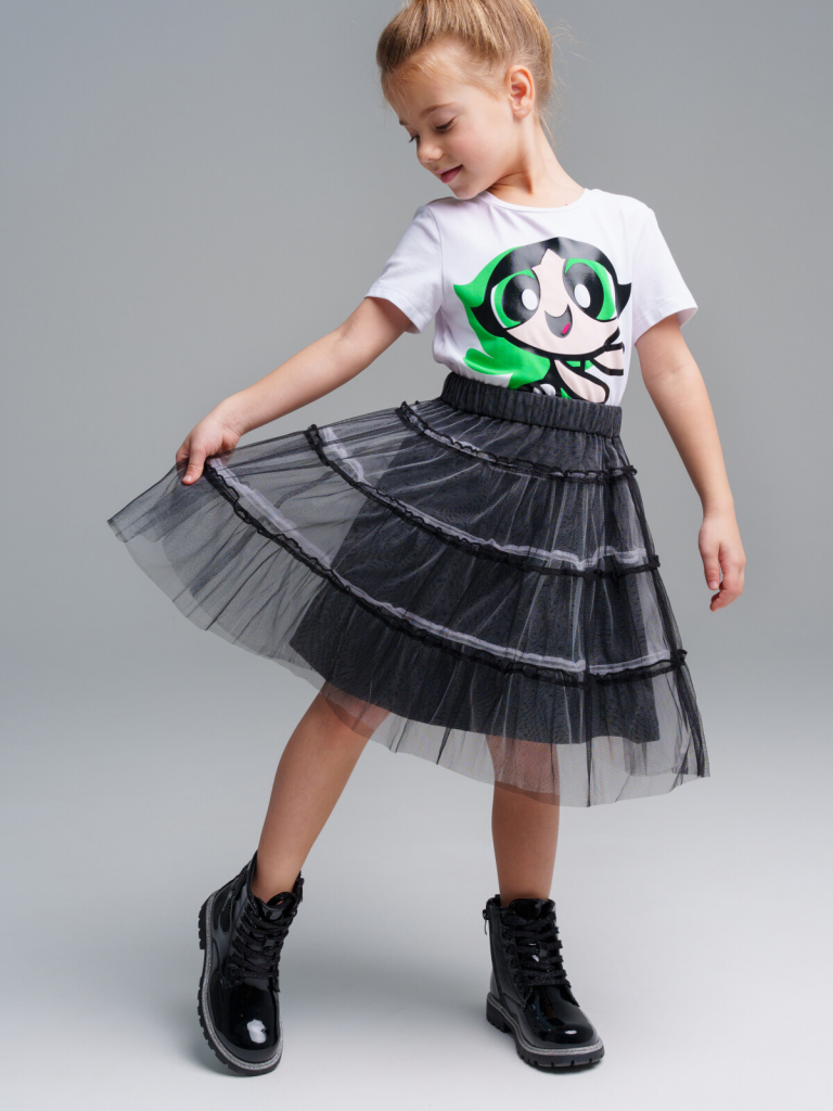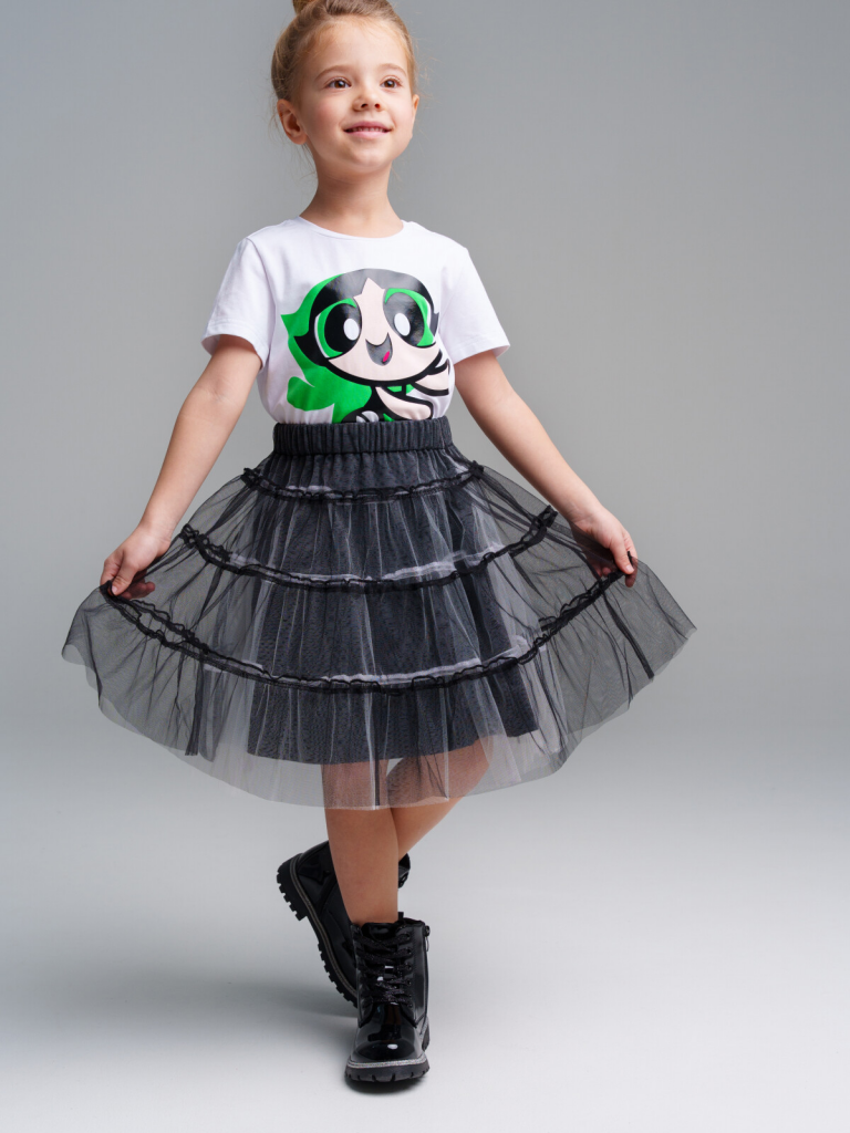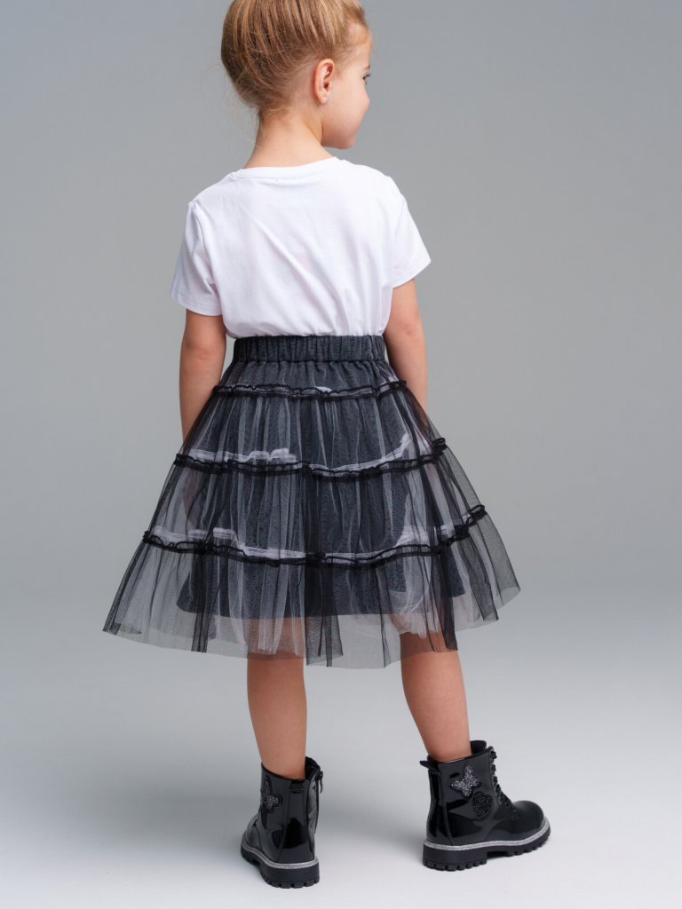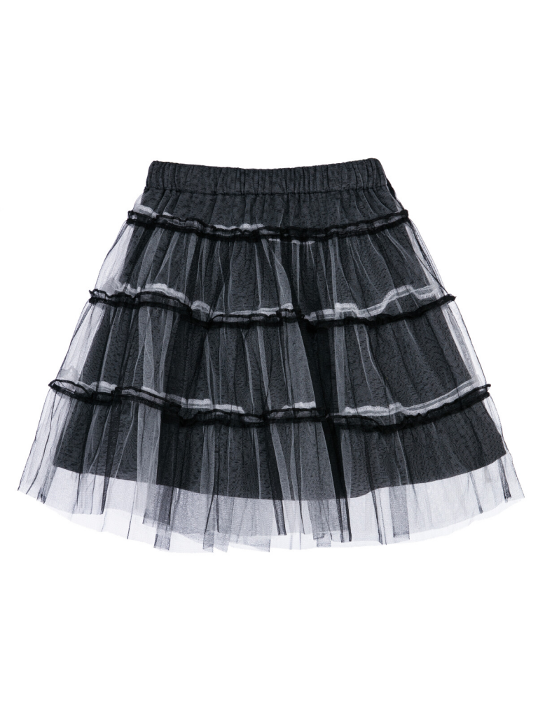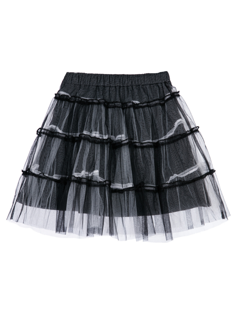 Юбка с верхом из сетки. Подкладка из трикотажного полотна. По талии резинка.