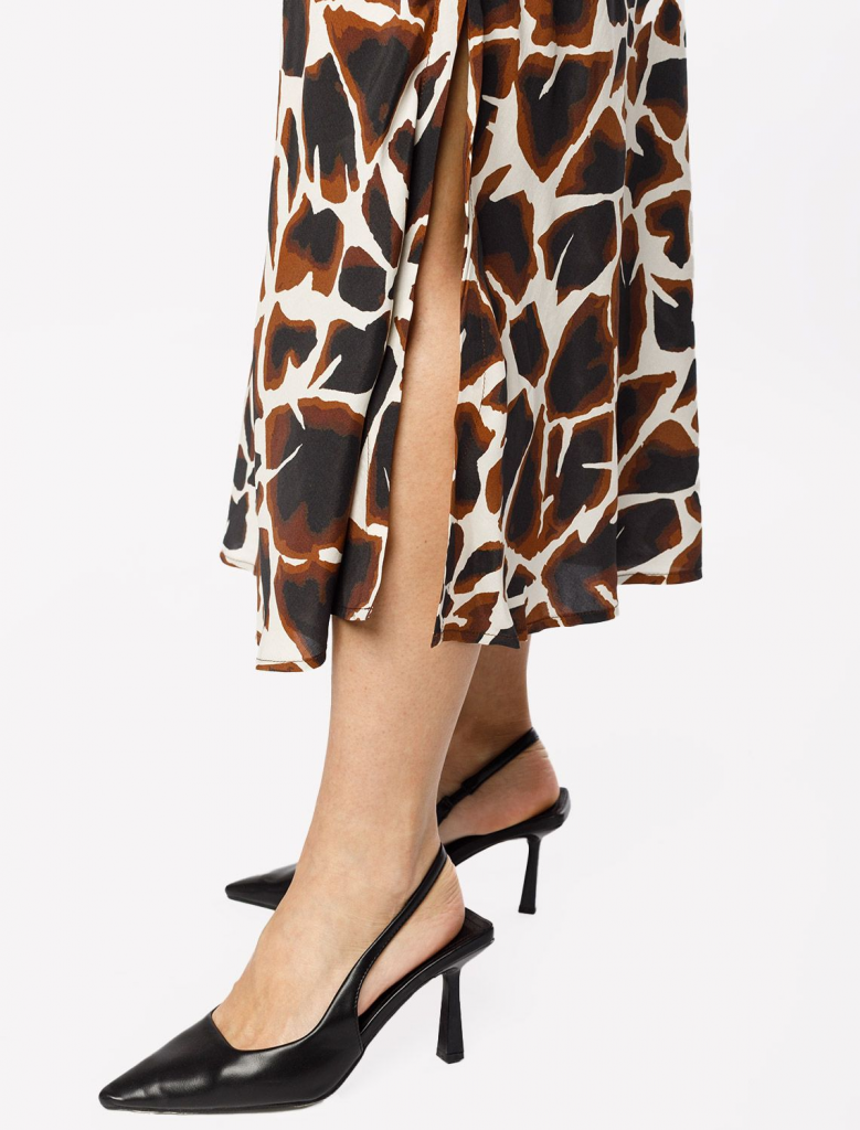 Юбка выполнена из вискозы с лиоцеллом. Модель А-силуэта кроенная по косой. Ткань изящно блестит и приятно охлаждает кожу в жаркое время года. Модель сечетается в костюме с топом D23.062 и блузкой D29.263