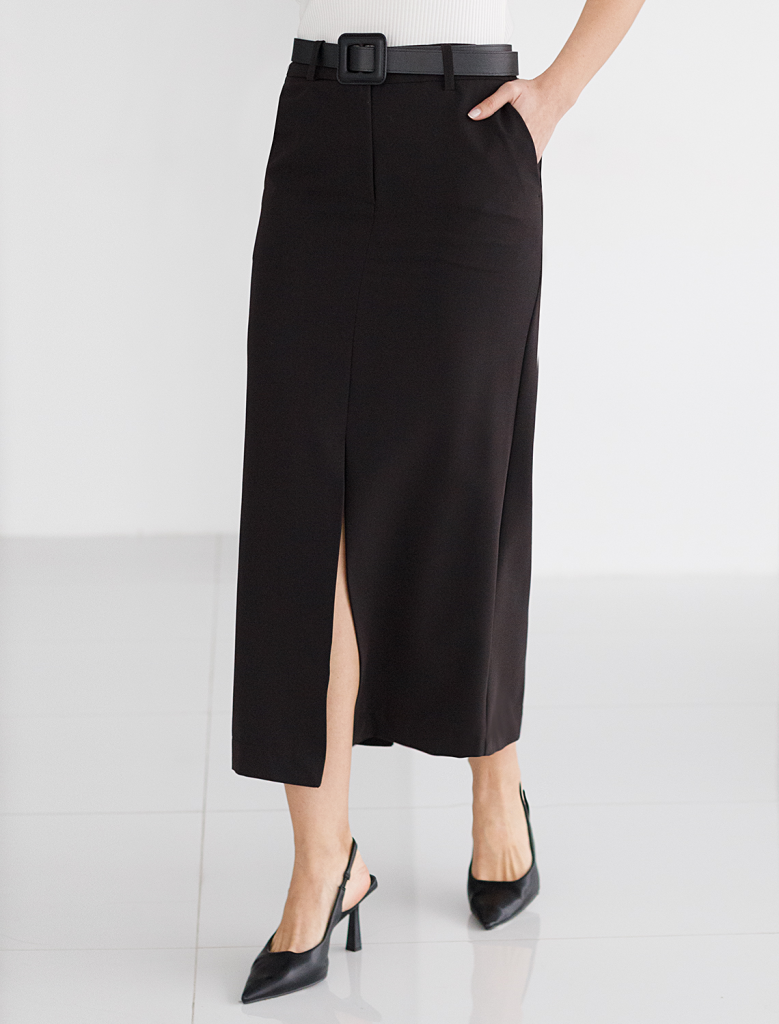 Юбка миди с двумя трендовыми разрезами выполнена из премиальной поливискозы с эластаном. Элегантная модель по фигуре хорошо впишется в строгий деловой образ, не нарушая выдержанного дресс-кода. Эластичный материал поддерживает оптимальный микроклимат, формоустойчивость и комфорт в течение всего дня.