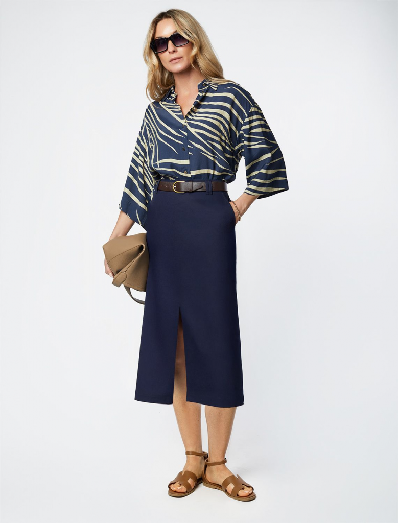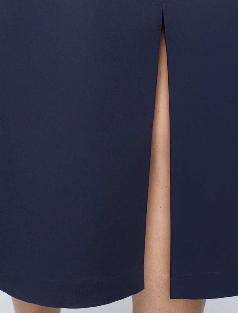 Женская юбка длины миди А-силуэта выполнена из хлопокового твила. Изделие дополнено разрезом спереди и боковыми карманами. Застежка на молнии сбоку. Отличный вариант для любого сезона, как для офисного стиля, так и для повседневного гардероба. Натуральный материал ткани обеспечивает высокий уровень комфорта, отличную гигроскопичность и воздухопроницаемость. Эластан в составе изделия минимизрует деформацию модели и продлевает срок носки.