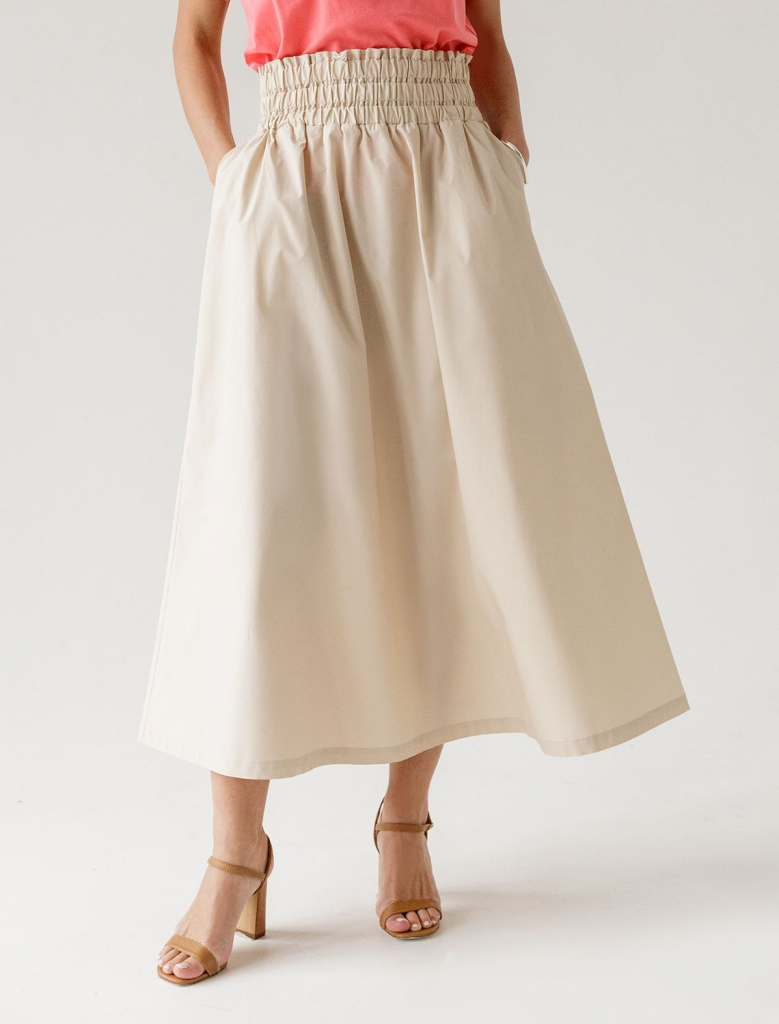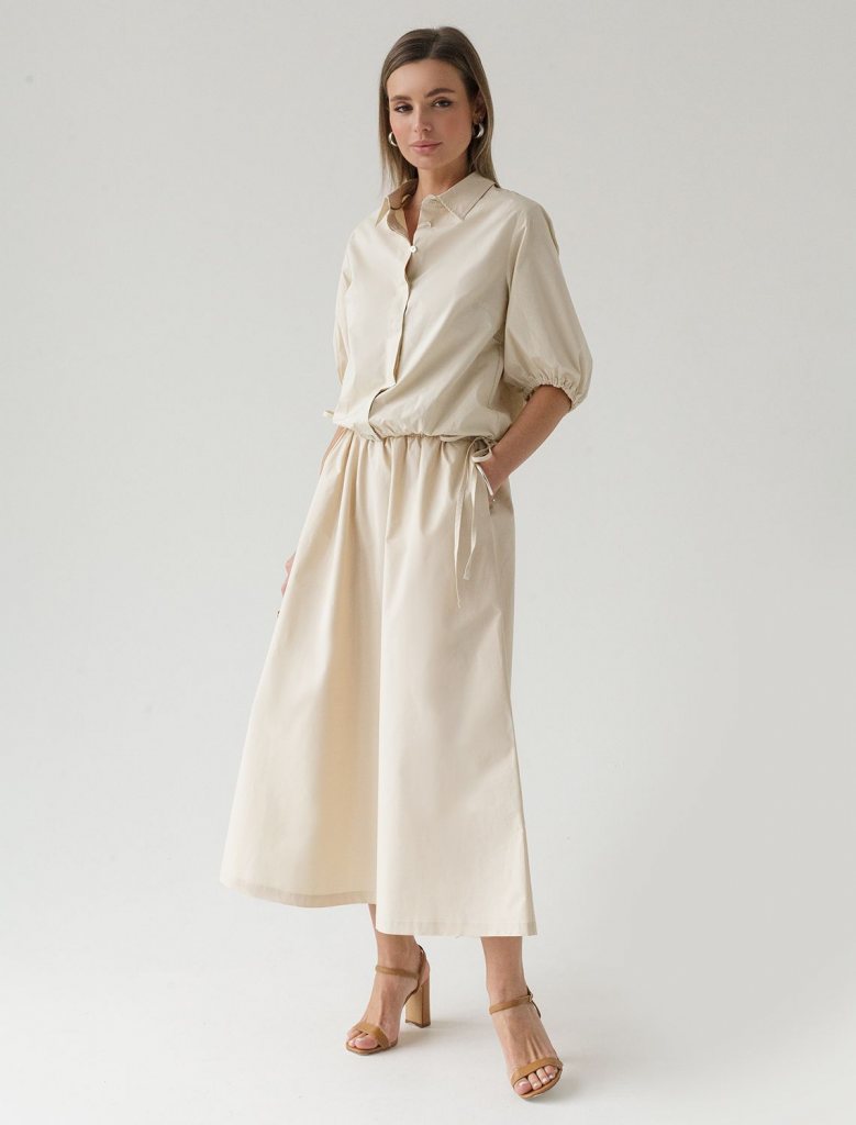 Юбка выполнена из легкого хлопкового поплина. Воздушная модель дополнена боковыми карманами и эластичным поясом на резинке со сборкой. В изделии будет комфортно, даже в самое жаркое время года. Подходит для любой фигуры. Сочетается в костюме с блузкой D29.247 и D29.264.
