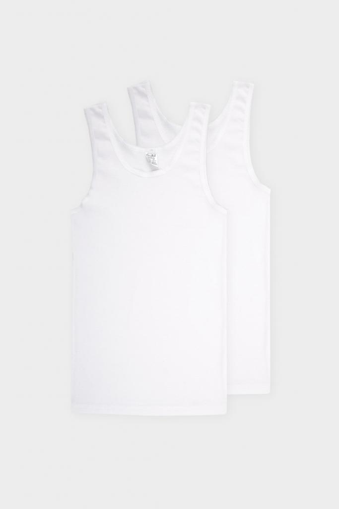 Трикотажные бесшовные майки в комплекте 2 шт из натурального хлопка. Отсутствие боковых швов обеспечивает комфорт при ношении. Горловина и проймы украшены эластичной кружевной тесьмой. Изделие сохраняет цвет и форму после многократных стирок. Все трикотажные полотна производятся в соответствии с нормами Швейцарского сертификата ЭкоТекс.