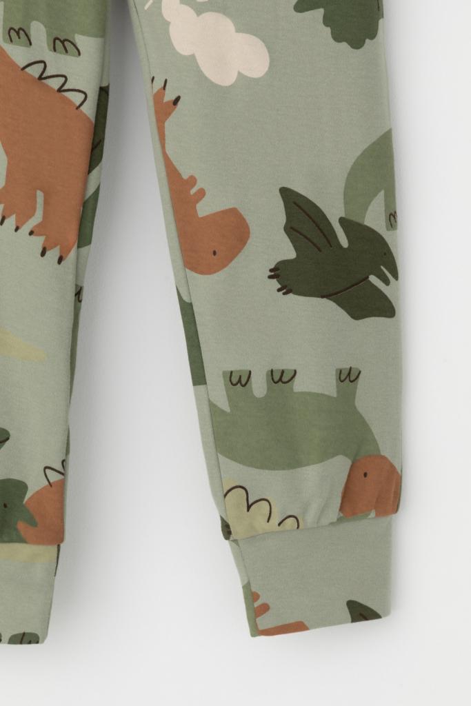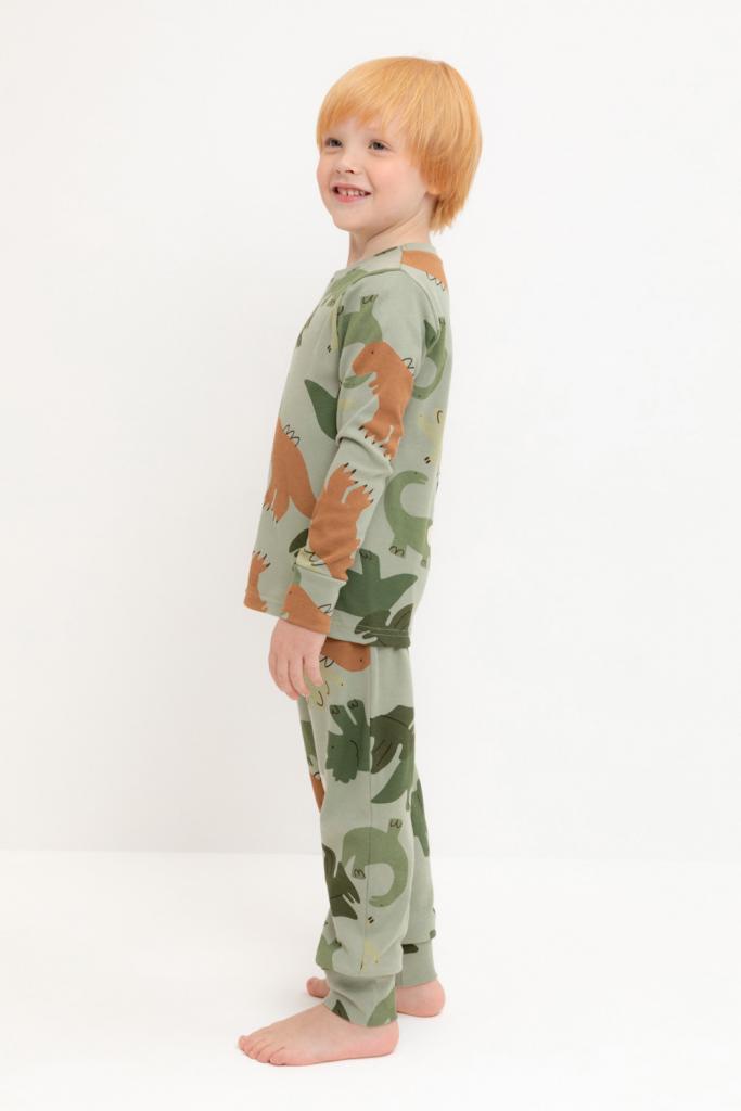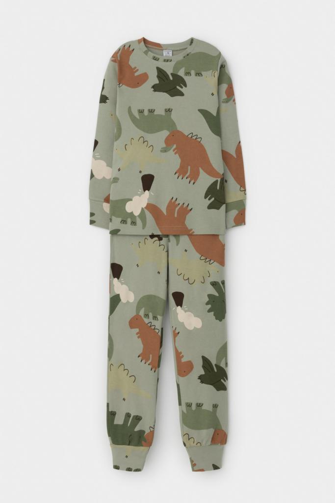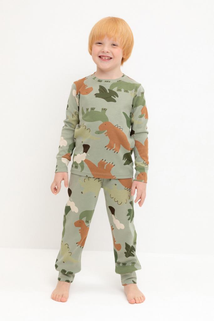 Трикотажная пижама из натурального хлопка. Джемпер с длинными втачными рукавами и брюки с эластичной резинкой в поясе. Мягкие манжеты на рукавах и по низу брюк. Оригинальная набивка выполнена из стойких текстильных красителей. Изделие сохраняет цвет и форму после многократных стирок. Все трикотажные полотна производятся в соответсвии с нормами швейцарского сертификата ЭкоТекс.