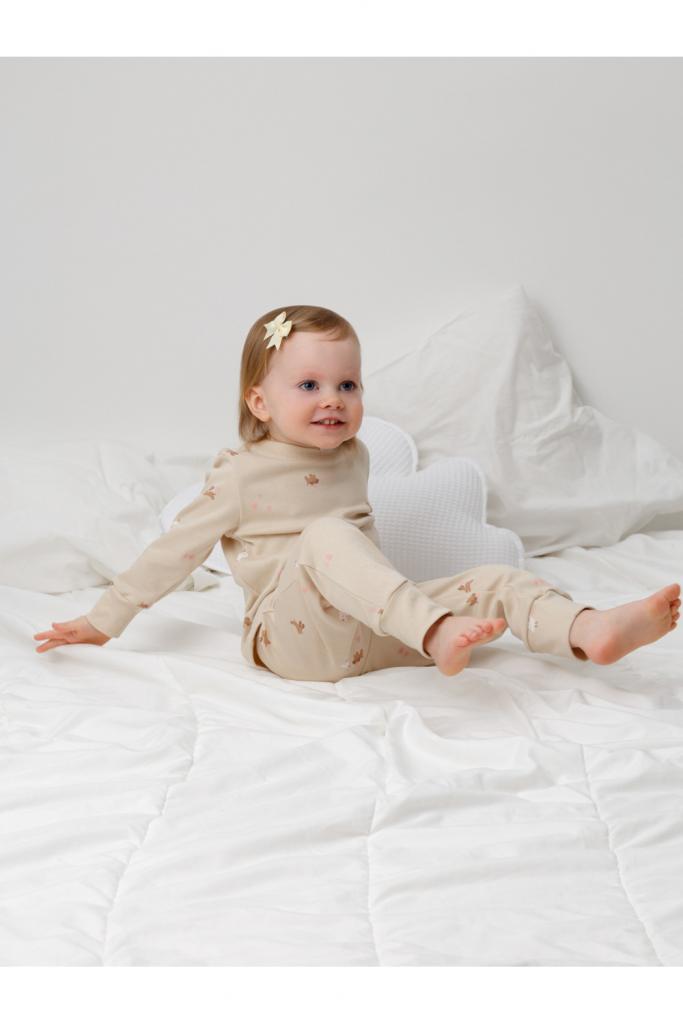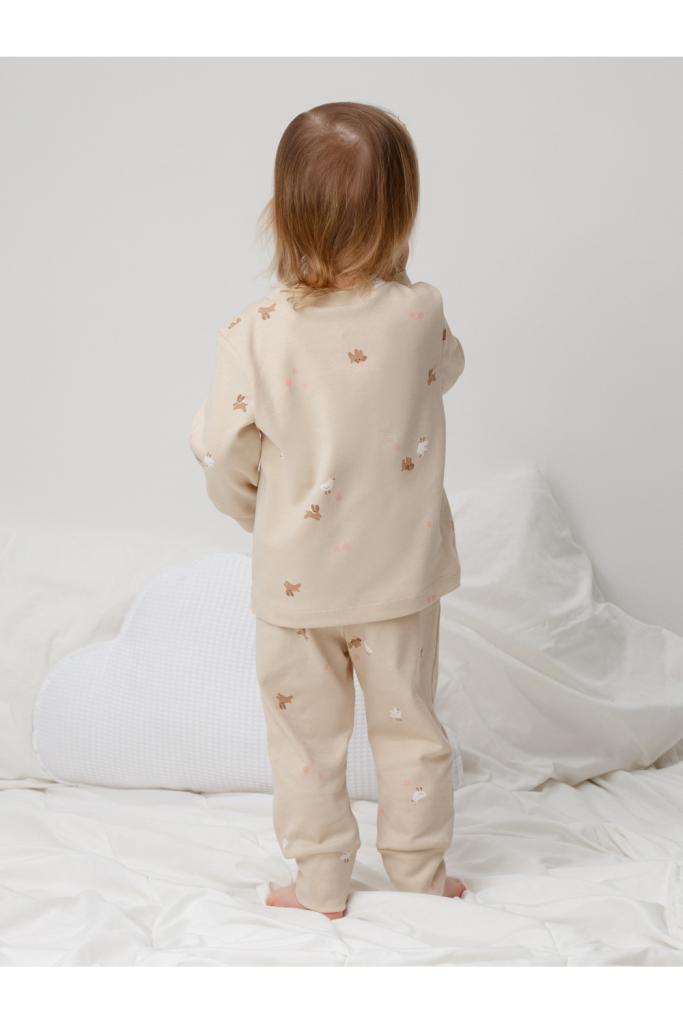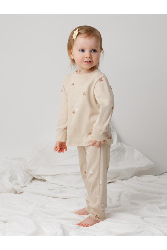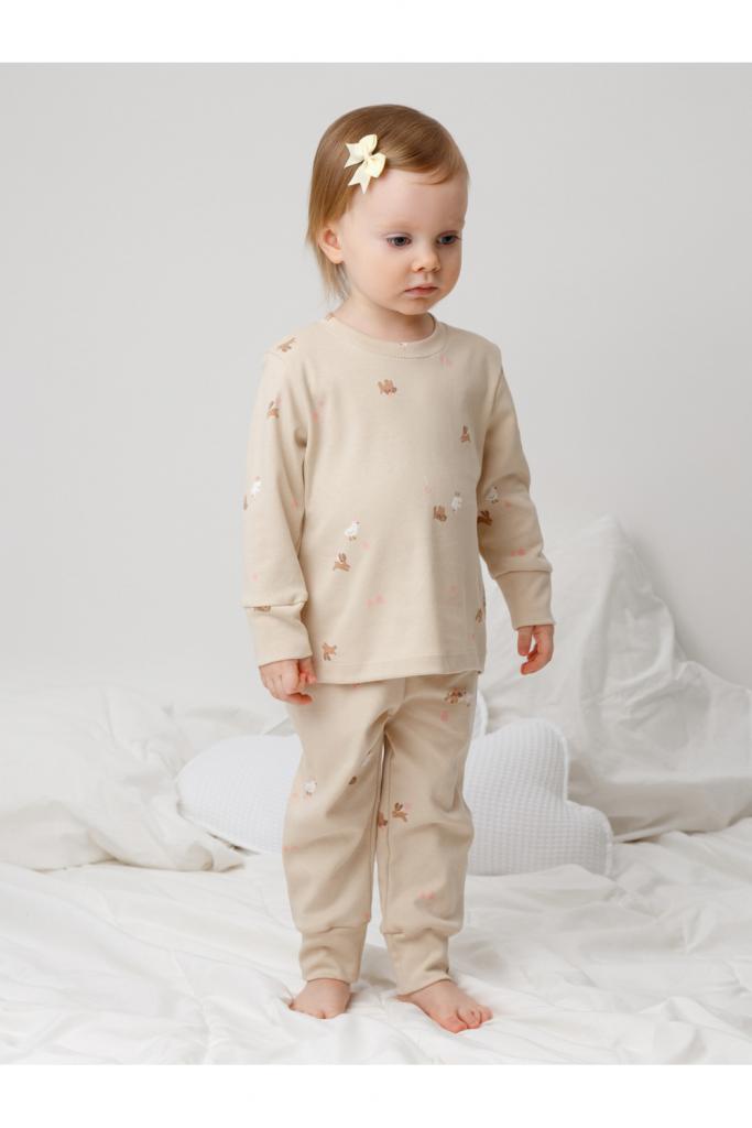 Трикотажная пижама из натурального хлопка. Джемпер с длинными втачными рукавами и брюки с эластичной резинкой в поясе. Мягкие манжеты на рукавах и по низу брюк. Оригинальная набивка выполнена из стойких текстильных гипоаллергенных красителей. Изделие сохраняет цвет и форму после многократных стирок. Все трикотажные полотна производятся в соответсвии с нормами швейцарского сертификата ЭкоТекс.