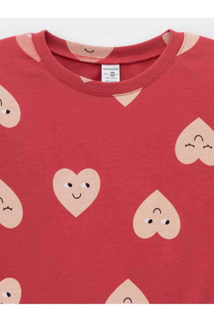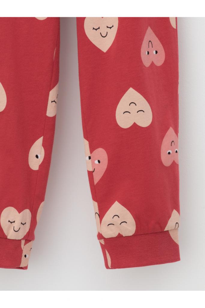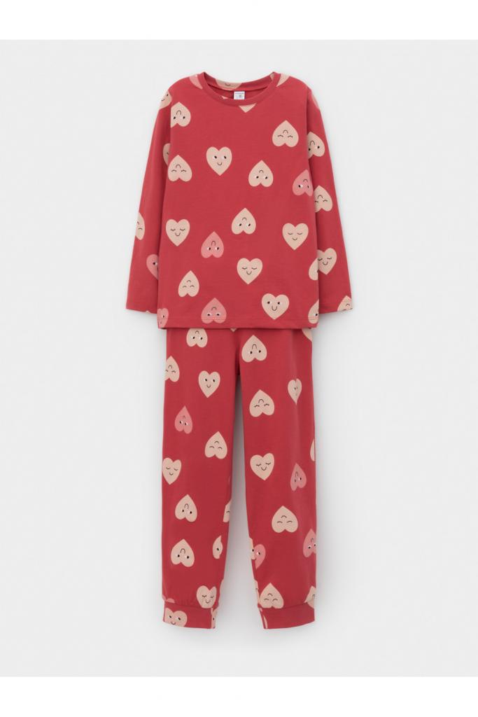 Пижама для девочки из натурального хлопка. Джемпер с длинными втачными рукавами и брюки с эластичной резинкой в поясе. Мягкие манжеты по низу брюк сделаны из материала в рубчик. Оригинальная набивка выполнена из стойких текстильных гипоаллергенных красителей. Изделие сохраняет цвет и форму после многократных стирок. Все трикотажные полотна производятся в соответствии с нормами швейцарского сертификата ЭкоТекс.